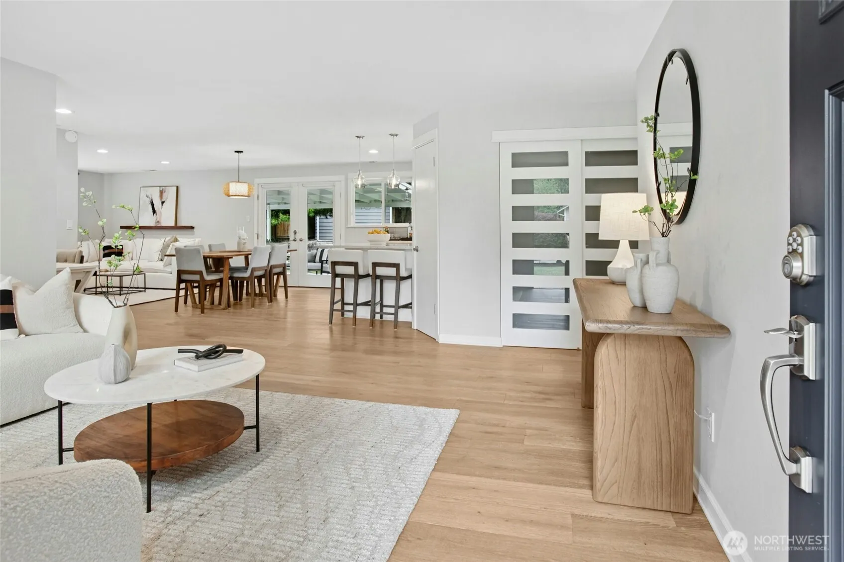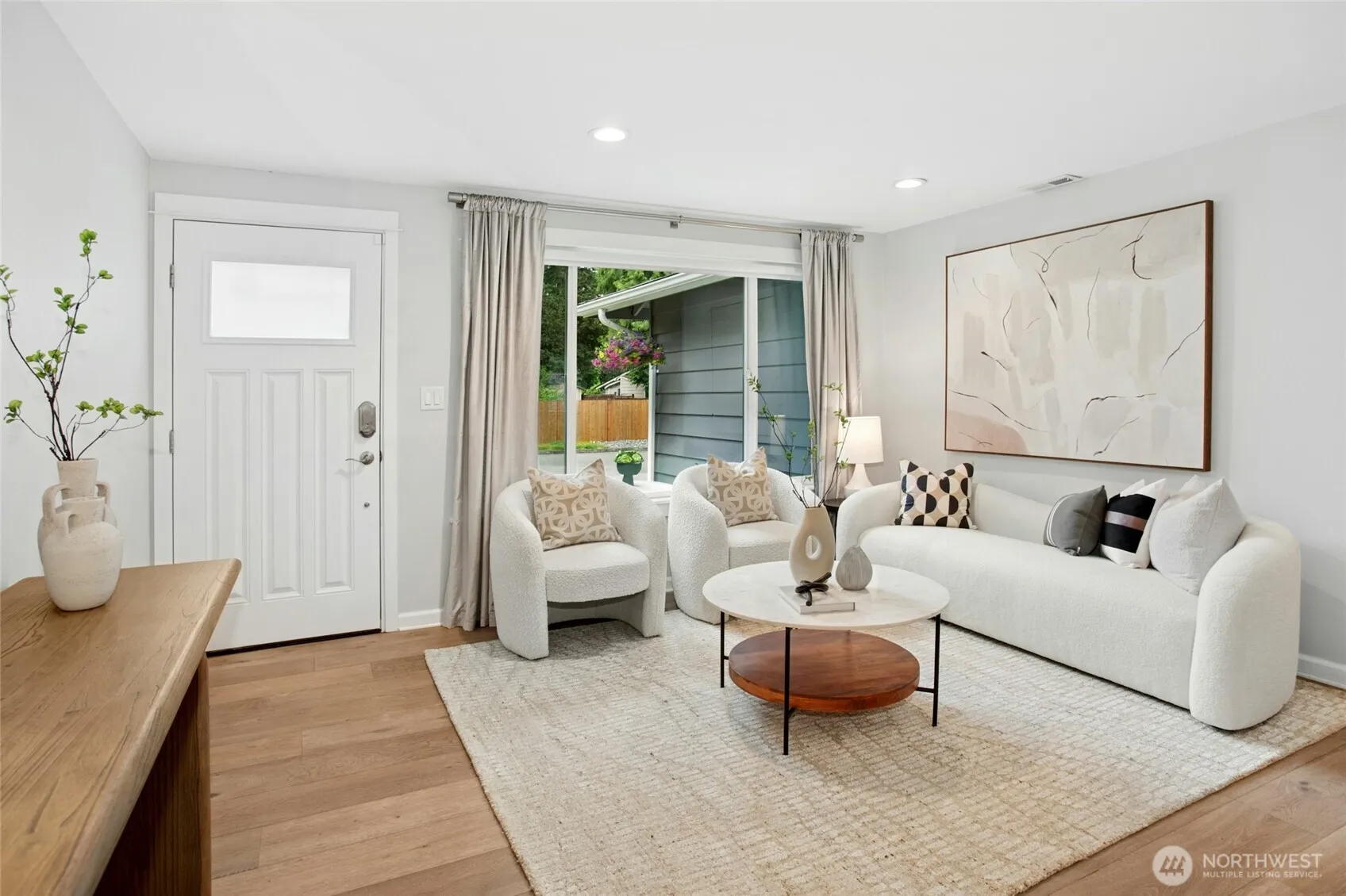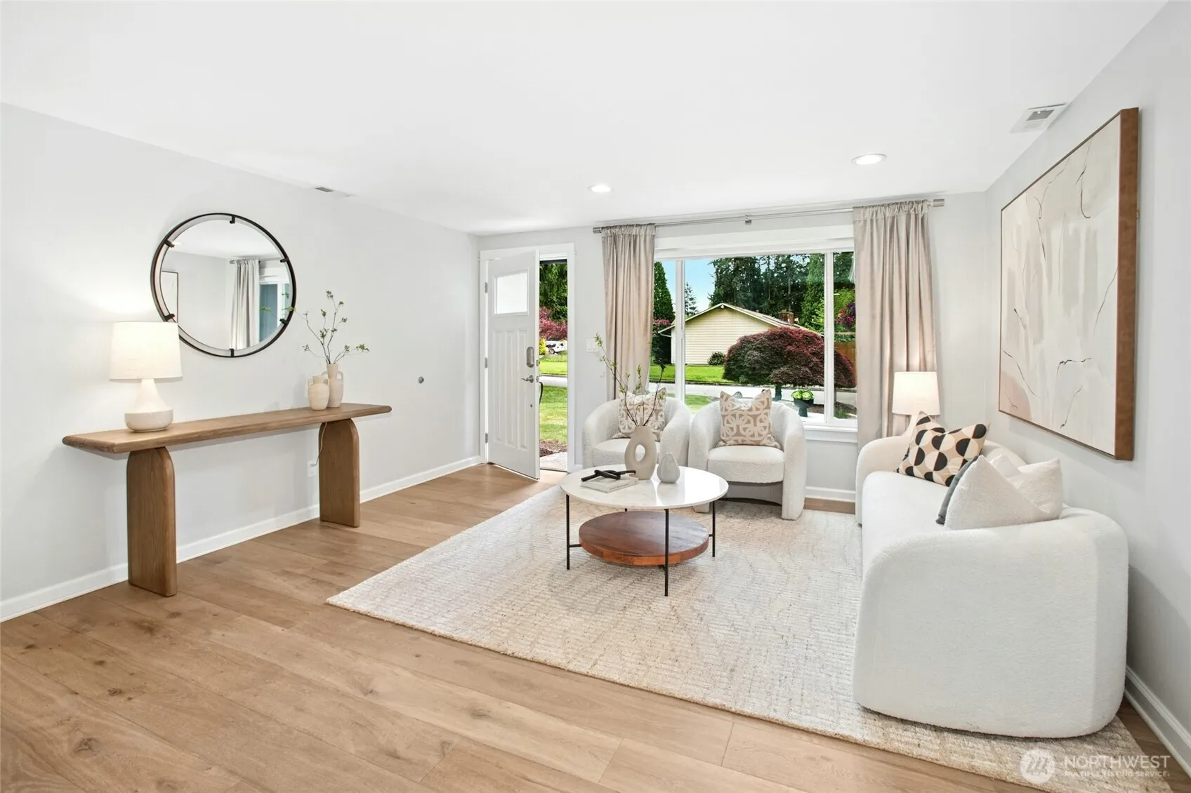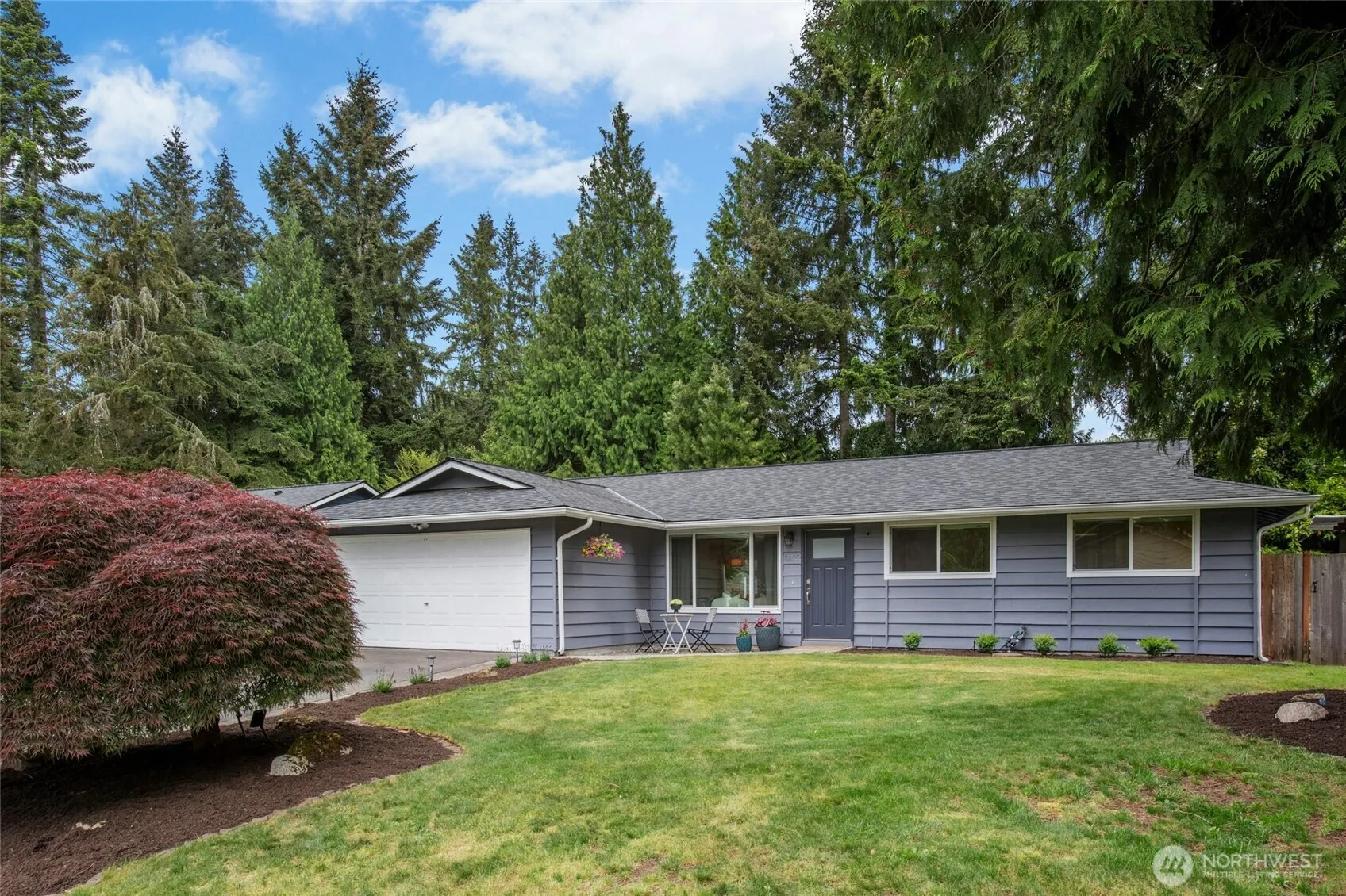 Absolutely charming and designed for easy living! This beautifully updated 3-bed, 1.5-bath home in Woodinville features a bright kitchen with quartz countertops, French oak engineered hardwood floors, and refreshed baths, including a laundry area with powder room. The cozy primary suite offers continental bath access. French doors lead to a large, private backyard oasis—lush with fruit trees, raised garden beds, and a covered patio with hot tub for year-round enjoyment. 2020 Landmark PRO roof (25-year transferable warranty), newer A/C and updated plumbing in 2019 offer comfort and peace of mind. Spacious 2-car garage plus RV/boat parking. Pre-inspected and move-in ready! Walk to schools, downtown, wineries, dining, and trails.