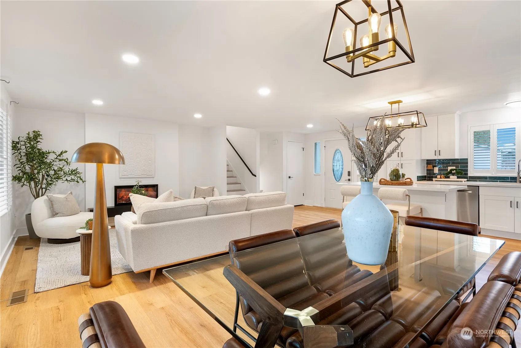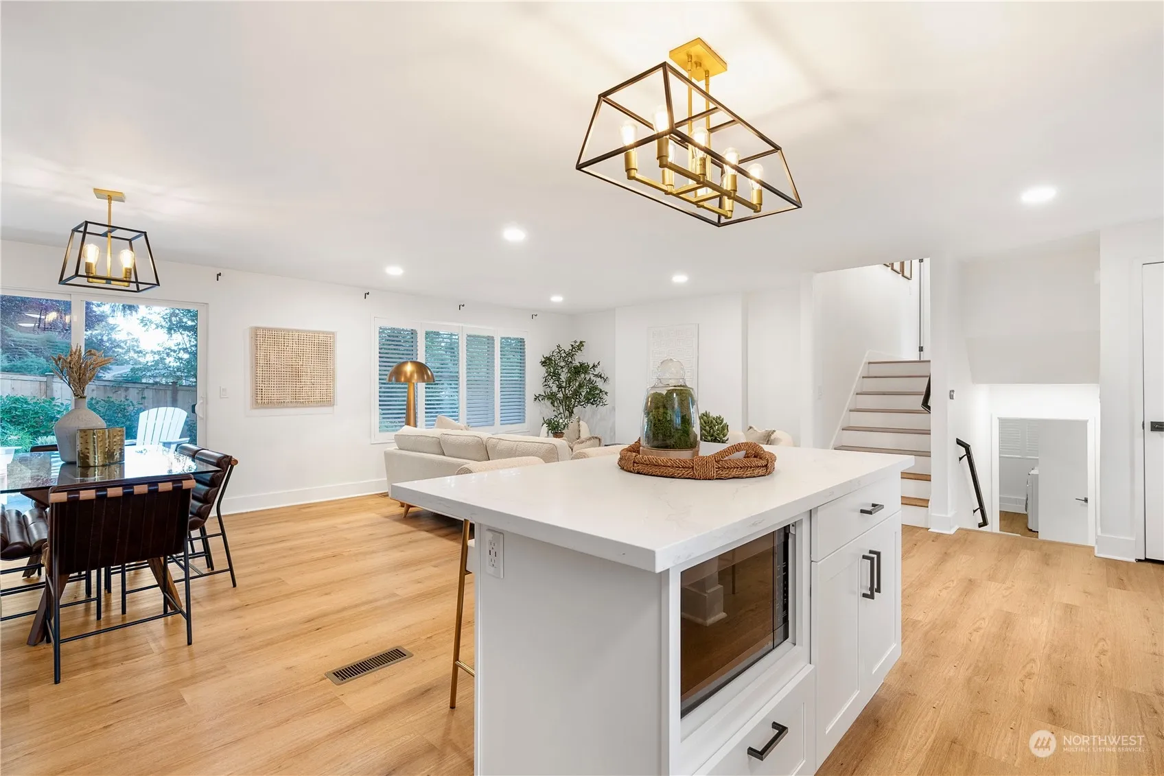 Beautifully remodeled home with a flexible floorplan! The light-filled great room with a cozy fireplace opens to the outdoors, perfect for entertaining. The updated kitchen includes hardwood floors, white cabinets, stone countertops, breakfast bar, and stainless steel appliances. The upper level features an owner’s suite with three closets and remodeled 3/4 bath, plus two bedrooms and a full bath. The lower level offers a family room with a fireplace, office/flex space, and laundry. Recent upgrades: 2022 LVP floor, electric and gas fireplaces , 2024 new roof, 2022 kitchen island , new AC, water heater, and fence. Fenced yard with deck and patio. Community pool, playground, and sports court nearby. Minutes to Totem Lake and freeway access!