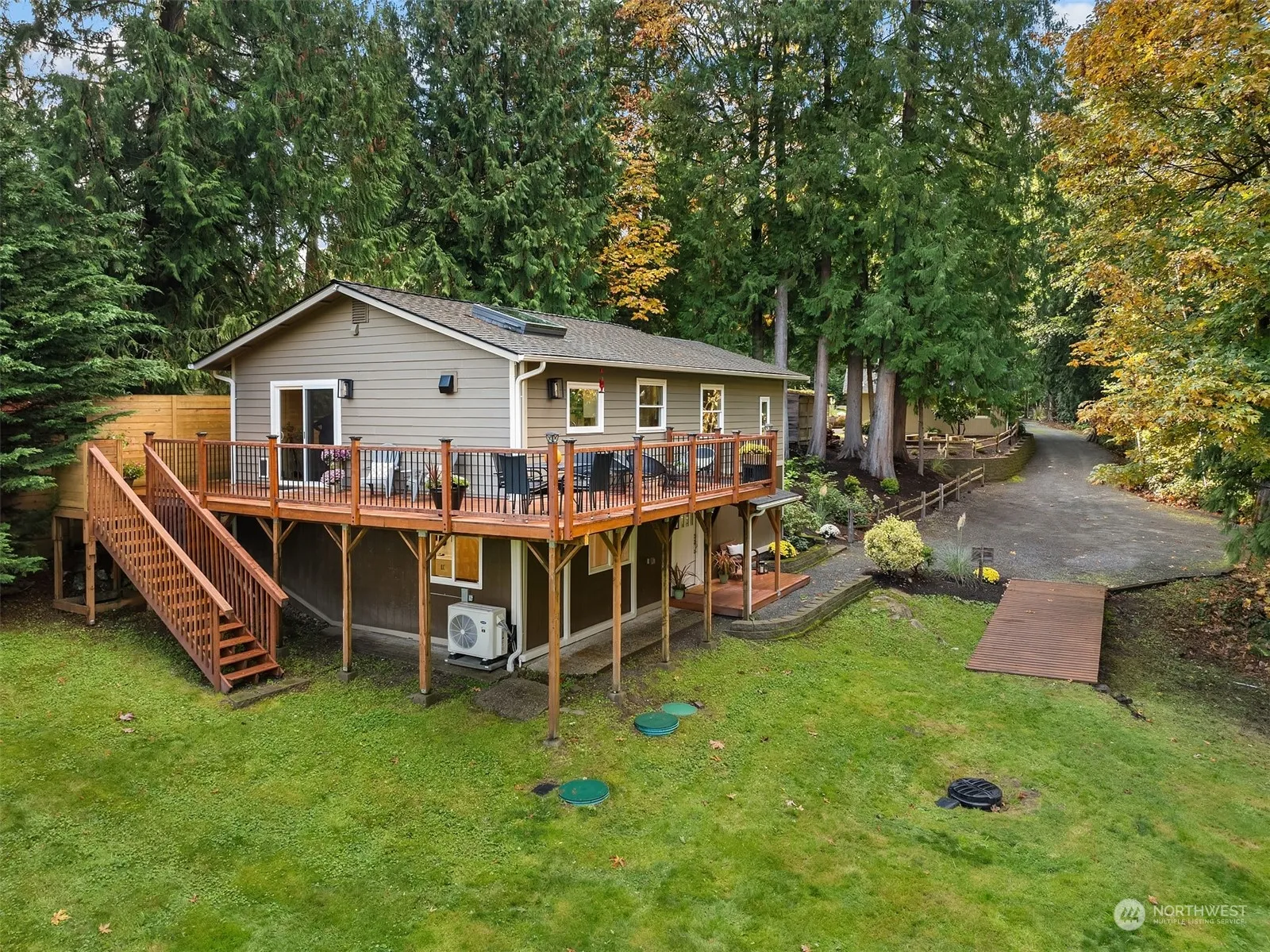 Don’t miss this [HIDDEN GEM] w 2 homes tucked into a quiet WOODINVILLE neighborhood of Multimillion Dollar homes surrounded by majestic trees & gardens. Peaceful~Tranquil~Private. Newly Renovated Home+DADU on 1.06 acres. Nearly 120K in Renovations! Gorgeous White Kitchen, Luxurious Primary Bath, New LVP Floors, Hardware/Trim, Heat pump w AC, Appls & much more [MUST SEE TO FULLY APPRECIATE] Main house boast 3 beds w 2 ¾ baths & wrap-a-round deck. Adorable DADU/Cottage comprised of 1 bed & ¾ bath, Great room w woodburning stove, full kitchen, dining & laundry. Possible house hacking/income producing property. New 200amp electrical panel @ DADU & 200amp service @ house. Large low maintenance yard, EV Charger, RV/Boat Parking, Preinspected!