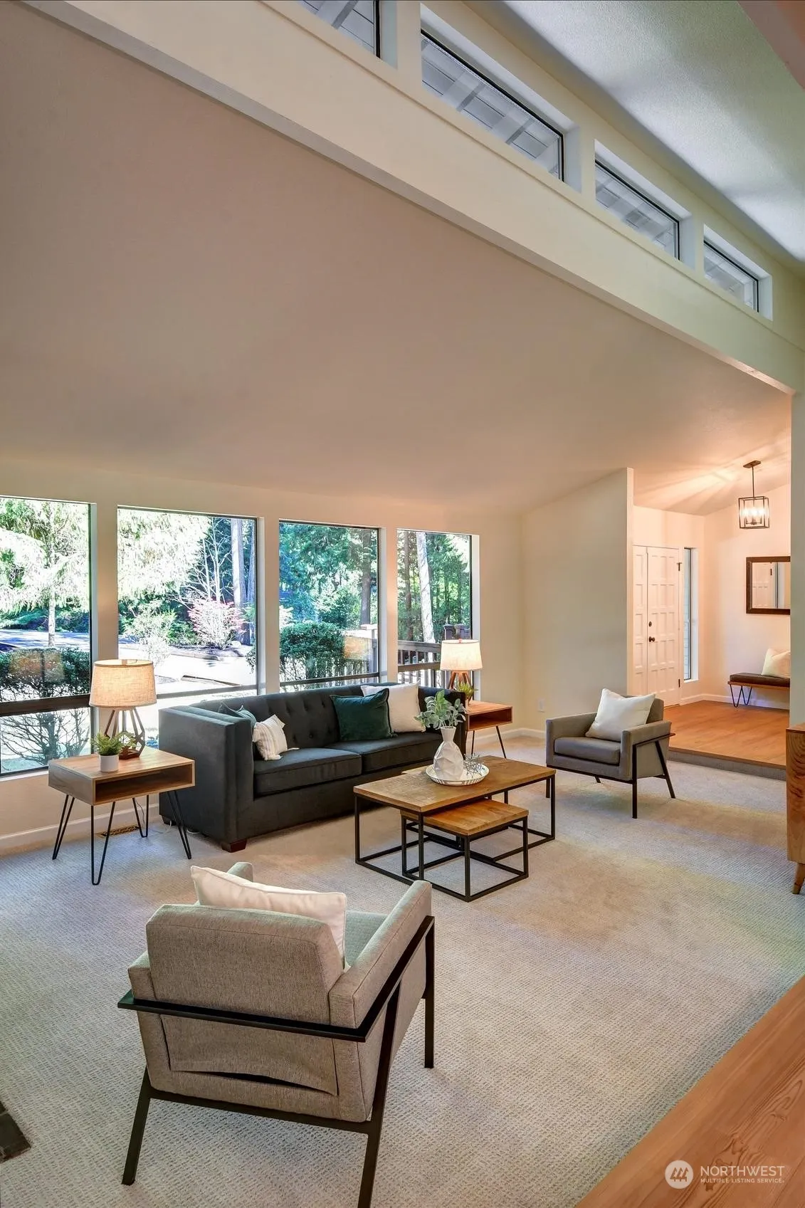 Welcome to this classic NW contemporary tri-level in Woodinville’s sought-after Reintree neighborhood! This home boasts updates, including a brand-new kitchen w/quartz counters, SS appliances & LVP flooring throughout the entry, kitchen & dining room. New carpet throughout the rest of the home. Kitchen slider opens to a massive deck, perfect for outdoor entertaining, overlooking an expansive backyard. Inside, enjoy two wood-burning fireplaces, vaulted ceilings & clerestory windows that fill the living room w/natural light. The lower-level family room is ideal for gatherings w/ a half bath & laundry & slider to back patio. Upstairs the spacious primary suite offers a walk-in closet & en-suite bath, plus three additional bedrooms & full bath!