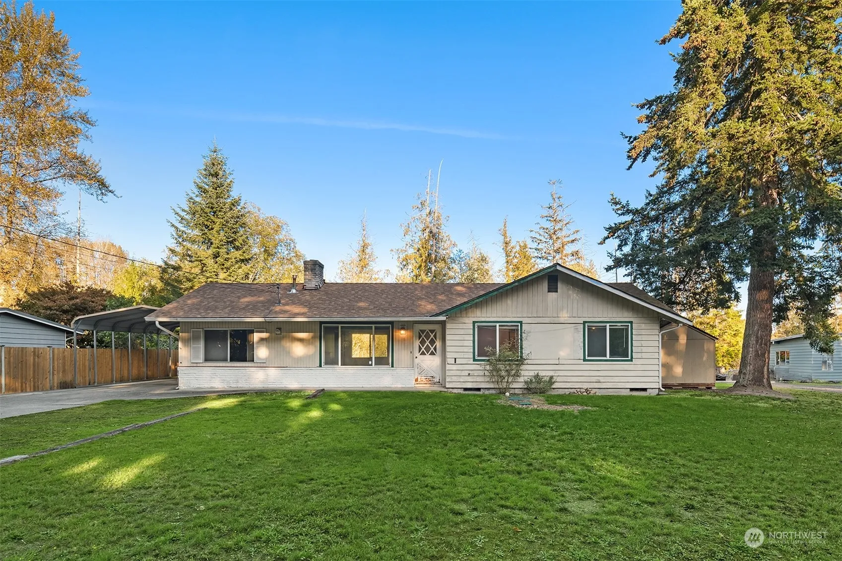 Incredible opportunity to own in a premier location. Single level living ideal for both investors and the end-user, mere miles from Downtown Woodinville, Cottage Lake and Tolt Pipeline. Redmond and Kirkland a short distance away, situated in an area with enormous growth potential. Renovate existing footprint, expand and add square footage, or build new in a location surrounded by high-end estates. Site features a shy half acre lot, detached garage with shop, and custom steel carport. Home lives larger than its 1260SF with open concept living space, additional den/bedroom and dining area. Potential for detached dwelling unit, Buyer to verify with county. Limitless potential in a location that makes your commute a breeze!