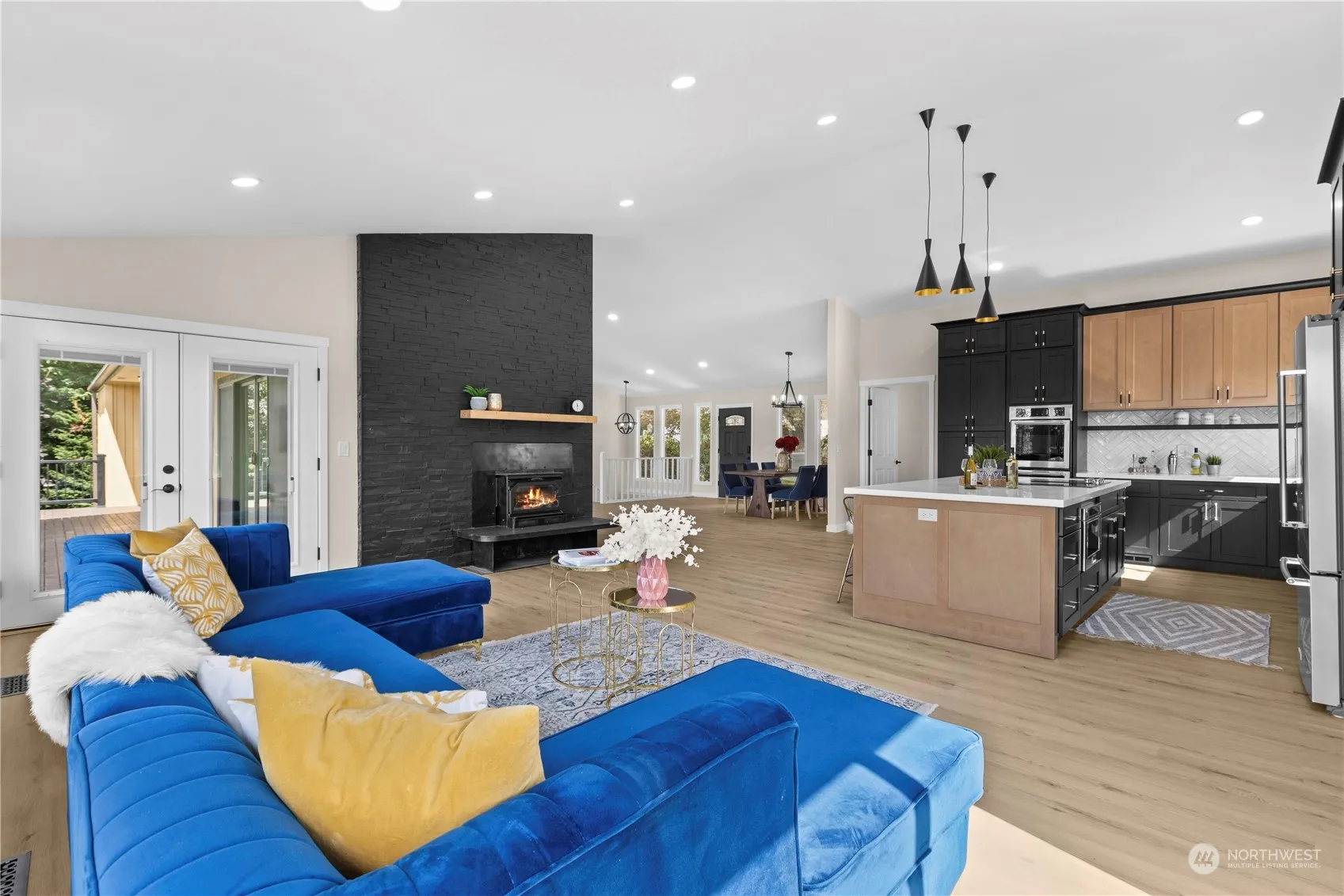 Discover unparalleled elegance in this stunning Woodinville Highlands retreat. This beautifully updated home offers an open-concept layout bathed in natural light, with vaulted ceilings and sophisticated finishes throughout. Versatile opportunity and living, it boasts two full kitchens (upper and lower), stainless steel appliances, double ovens, and multiple living spaces, including a great room, bonus room, den/office, and additional finished room. With 4 bedrooms, 4 baths, 3 fireplaces, and 2 laundry rooms, comfort abounds. Step out onto balconies with sweeping hilltop views, enjoy the serene private setting with mature landscaping, RV parking, and dual furnace/AC. A must-see in a prime location! Easy access to 405 and 522.