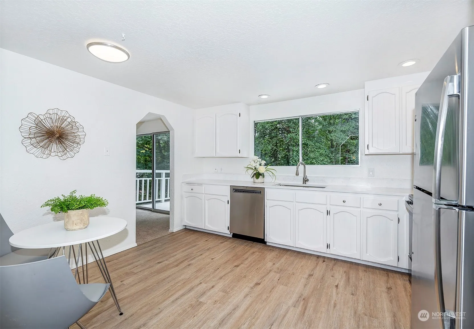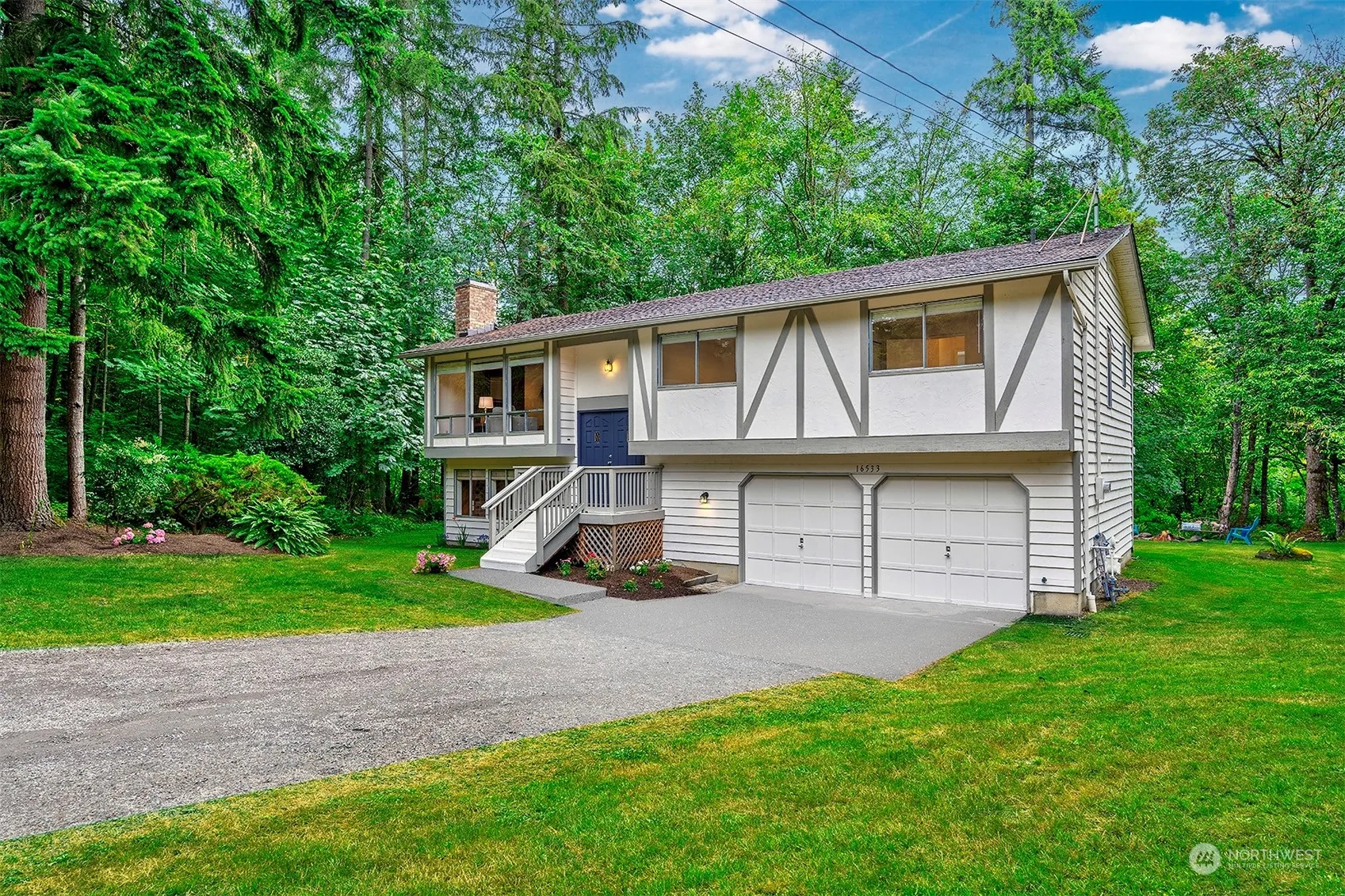 Beautiful 1+ Acre Private Lot With Room For All Your Toys Or 4-Legged Friends In Coveted NorthShore School District! Recently Updated Home Features New Flooring, Interior Paint & Lighting Fixtures Throughout. Kitchen Includes New LVP Flooring, New Stainless Appliances & New Quartz Counters. Light & Bright Living And Dining Room With Fireplace & Access To Oversized Deck. Spacious Primary Bedroom With Ensuite Bathroom & Slider To Back Deck. Large Multi-Use Daylight Basement Features Fireplace & Slider To Backyard. 2-Car Garage With Extra Storage Space. Expansive Back Deck Is Great For Outdoor Entertaining. Yard Includes Garden Space, Firepit & Potential For Barn, Shop Or ADU. New Exterior Paint (2024) + New Roof & Gutters (2019) Welcome Home!