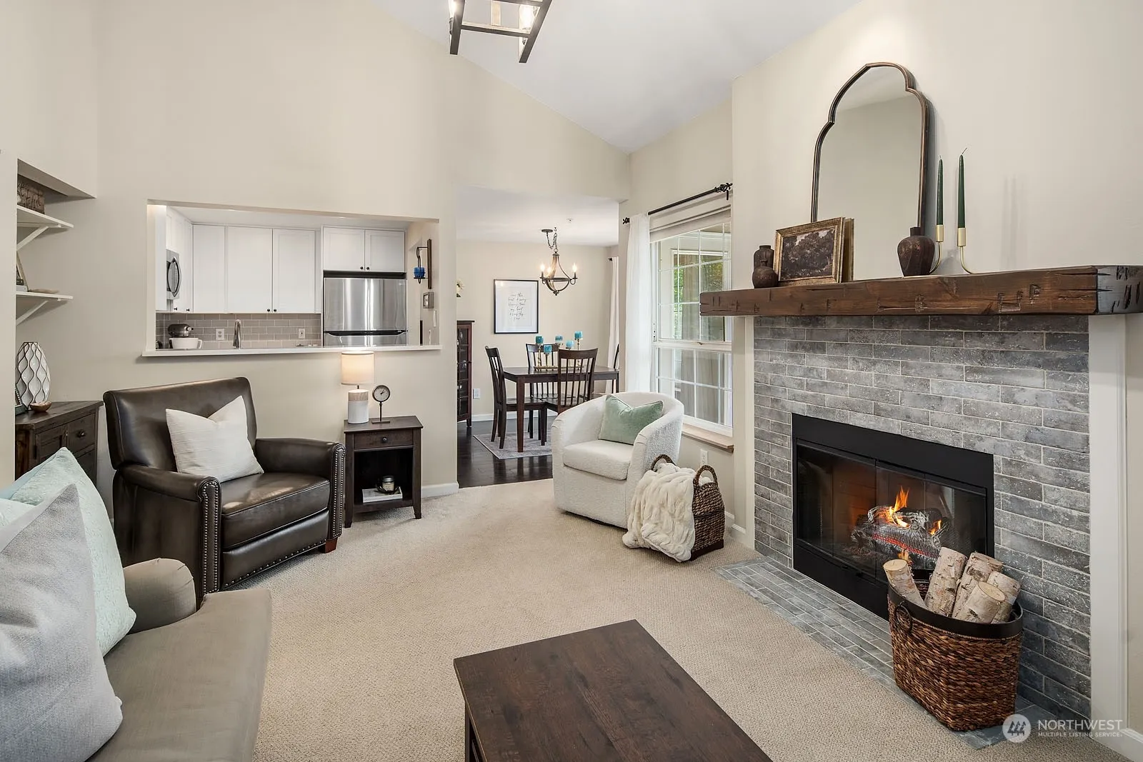Extensively remodeled top floor, end unit ideally located just blocks from downtown Woodinville. 3 bedroom, 2 full bath residence. Remodeled kitchen with new cabinets and quartz countertops seamlessly opens to the vaulted great room. Sun filled dining room. Spacious primary suite with remodeled bathroom and walk-in closet. Two additional guest bedrooms, one with their own walk-in closet. Updated secondary full bathroom. Plenty of storage. Side by side washer and dryer. Two parking spaces. Community clubhouse, workout room, and outdoor pool with hot tub. Close to all Woodinville amenities, wineries, shopping, and restaurants.