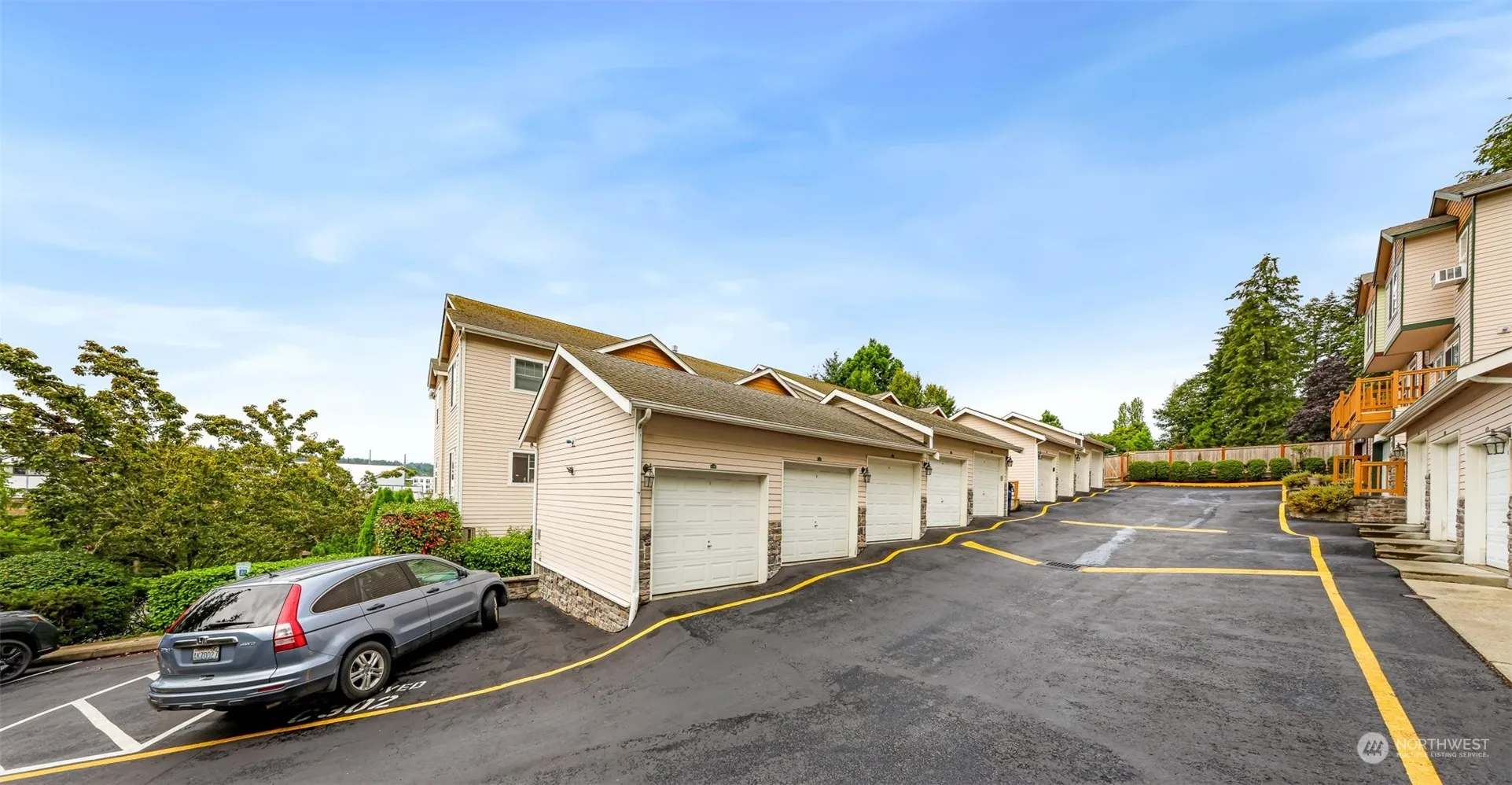 Location location location! East-facing UPDATED 2 bed ground floor unit with open floor plan! Spacious living room soaked in sunlight opens to deck, perfect for entertaining. Newer paint and laminate hardwood flooring. Bright, newer kitchen with ample storage and appliances less than 3 years old, spacious primary with large en suite bath. ’18 H20 tank. Minutes to 520 and Redmond transit center. Across the street from shops and movies. Award winning Lake Washington school district. Individual garage. Close to MS and other employers.
