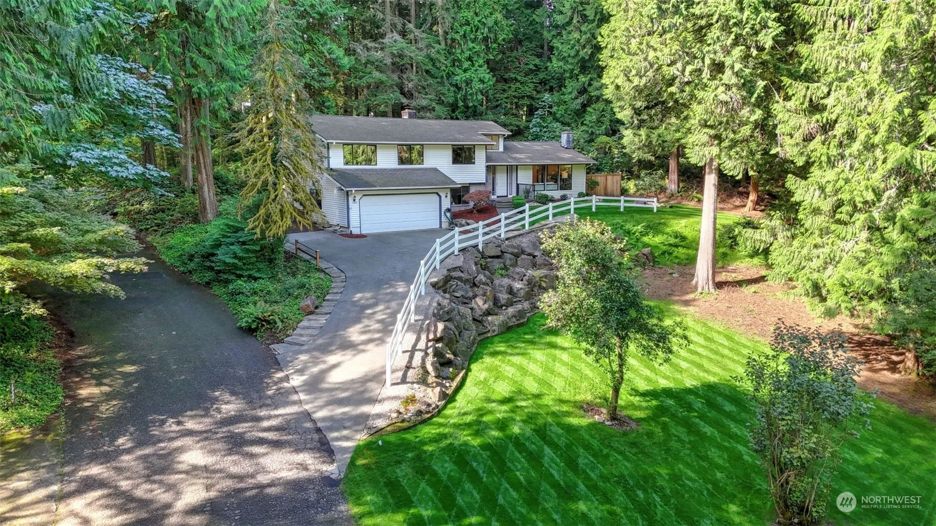 Beautiful home, updated through the years, offers 3 bedrooms and 3 additional living spaces perfect for working from home, hobbies, exercise room etc. 5 rooms can be bedrooms. Lower-level with bonus room and extra room provides plenty of flexibility. Situated on an oversized lot just shy of an acre, the property boasts ample parking, mature landscaping, and abundant privacy. Several patio areas off the kitchen make entertaining easy. Located on a quiet street, yet just minutes away from wineries, Cottage Lake, and all Woodinville has to offer. Features include primary bedroom with en-suite, remodeled bathroom, formal and informal dining areas, and hardwoods throughout the main floor. Great schools and a fantastic location!