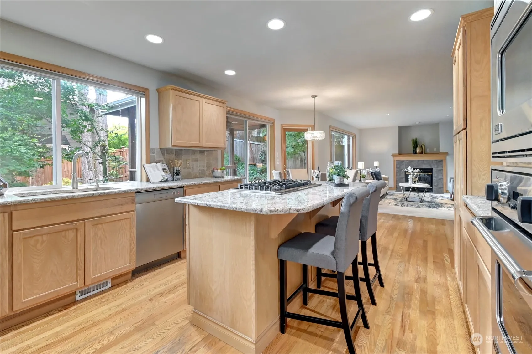 Wonderful 5 Bedroom, 3.5 Bath home located on a private cul-de-sac street. New Roof, New Exterior Paint, New Interior Painted Walls & Ceilings. The formal living & dining rooms feature high vaulted ceilings, skylights, gas fireplace, & wainscotting. Dramatic open staircase to the upper Level. Island kitchen w/slab granite, SS appls. Family rm w/gas frpl off kitchen. Primary suite has 5 pc bath, walk-in closet, & sitting area w/door to huge private deck. The lower level has a bonus room with exterior sliding door, full bath & bedroom. Covered deck off nook allows year around use plus large patio. Low maintenance, fully fence backyard.