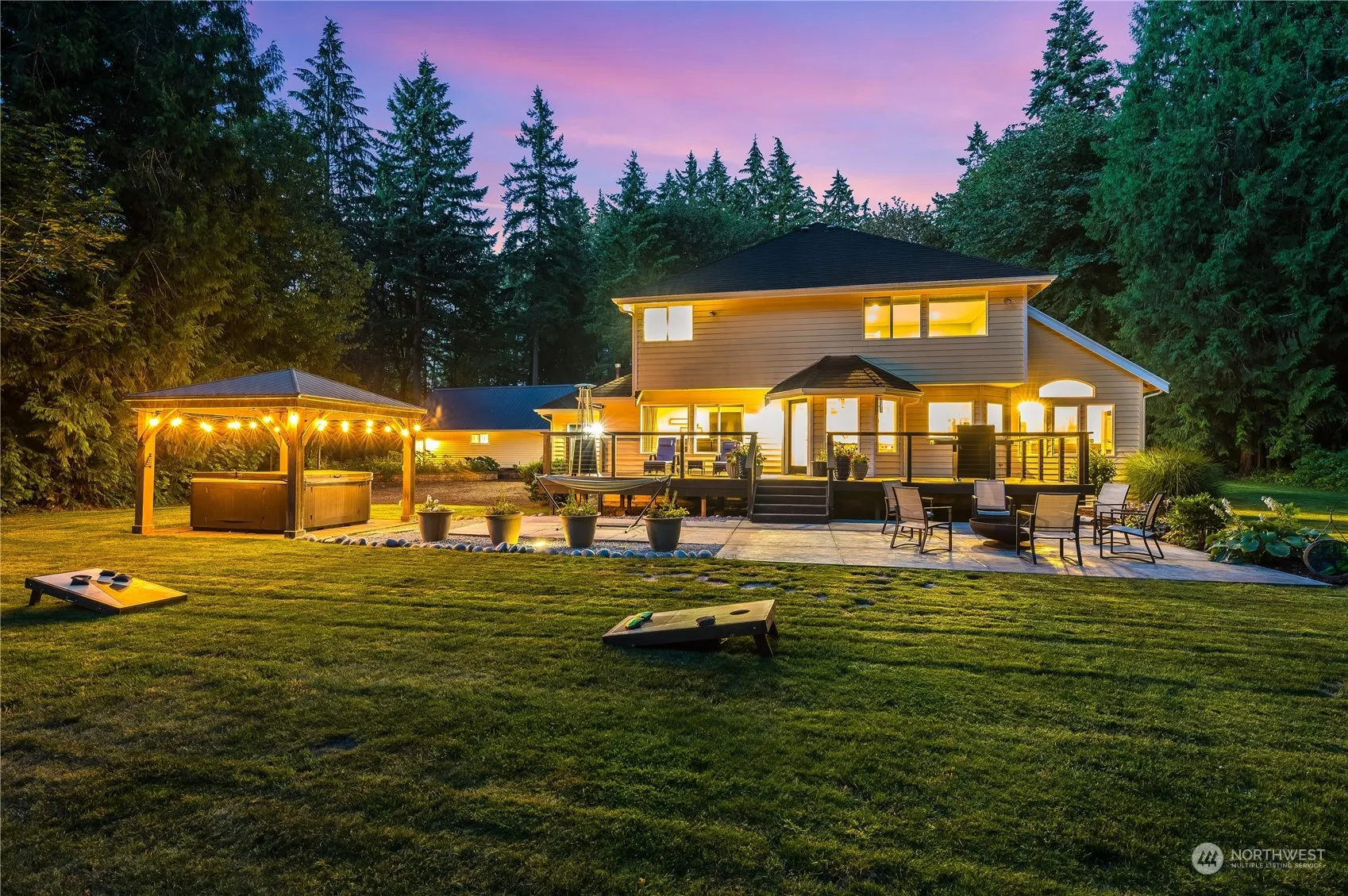 Stunning NW Craftsman on 2+ Private Wooded Acres. Discover tranquility just minutes from downtown Woodinville. Pride in ownership & meticulous attention to detail throughout. Soaring ceilings, light-filled spaces, oak floors enhancing the natural light. Chef’s kitchen w/massive island, honed granite counters, six-burner Wolf stovetop, Samsung smart refrigerator. TimberTech deck & patio extend the kitchen & family room, ideal for entertaining & relaxation. Luxurious primary suite features custom bath w/dual vanities, heated floors & towel rack, walk-in closet. Three-car garage + detached one-car garage/shop, raised garden beds w/irrigation, mature blueberry bushes, chicken coop, hot tub. Furnace, heat pump, & AC. This home has it all!