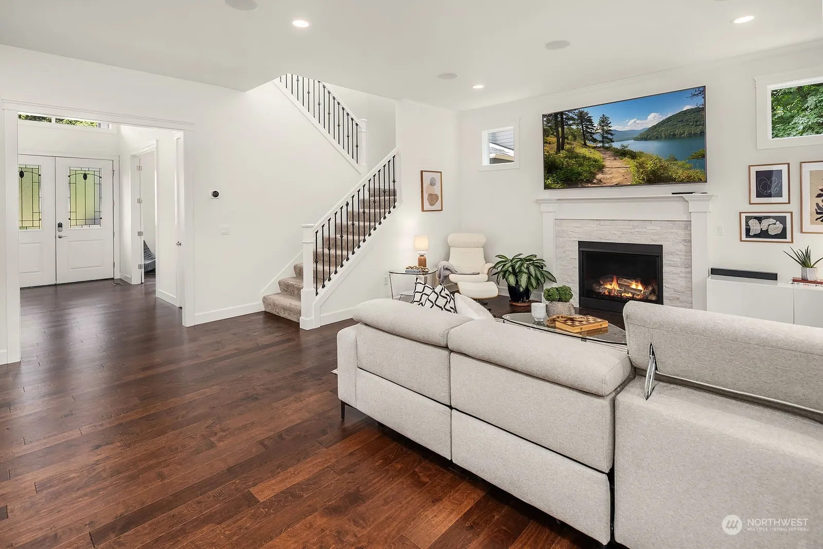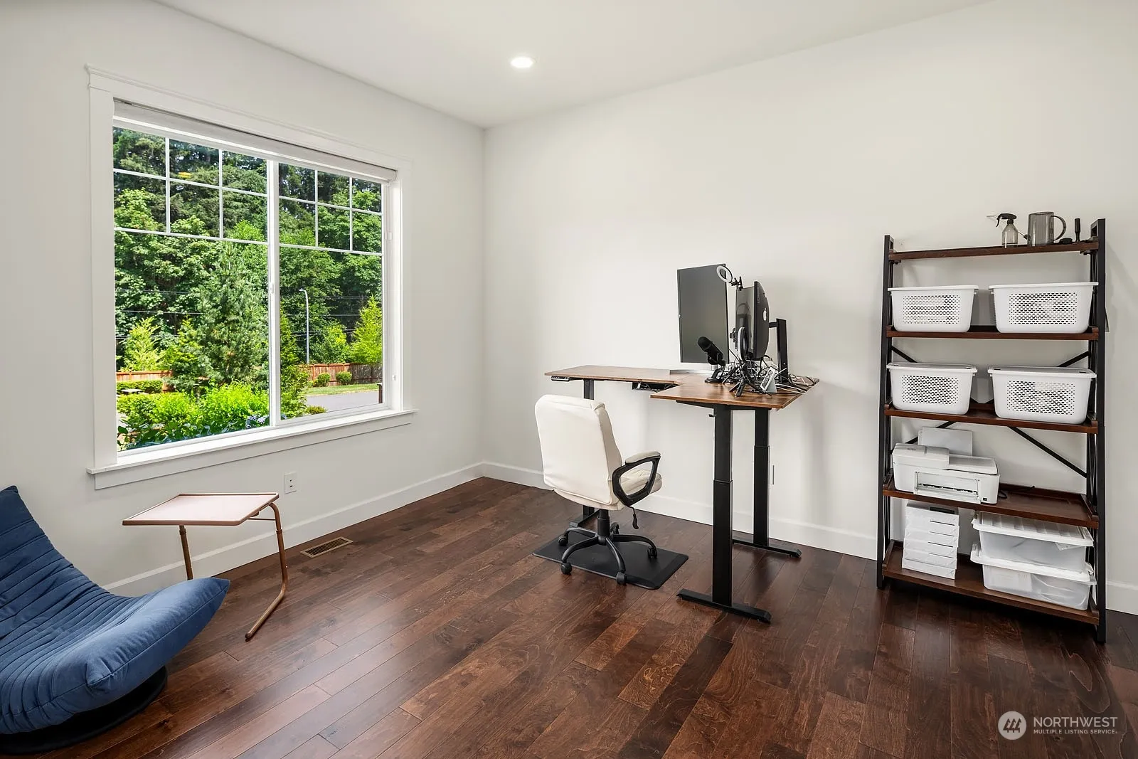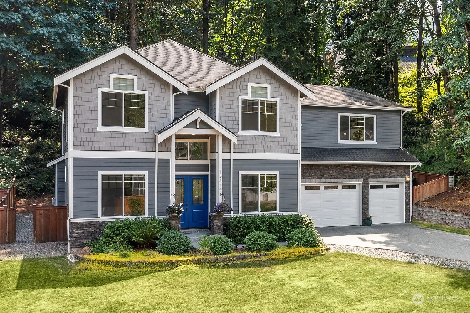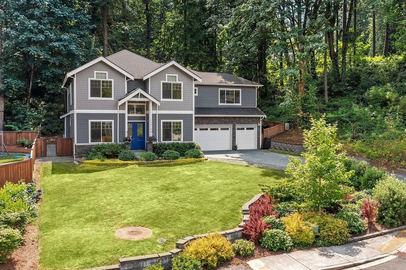 Two Story in Autumn Grove, stunning contemporary home has all the privacy you need. Entrance w/10′ ceilings on the main floor with office or 5th bedroom with 3/4 bath. Open floor plan concept kitchen, living space & Dining room. The kitchen has quartz countertops, SS appliances, and Walk-in Pantry. Sliding door leading to the covered back patio, large deck plumbed for gas BBQ & relaxing hot tub. Upper floor has primary bedroom with huge bathroom & walk-in closet. Three additional large bedrooms, bonus room and utility room. Spacious 3 car garage, EV charger, AC, Automated back up generator, gas fireplace and mudroom add convenience and comfort. Convenient location near DT Woodinville, close to all amenities. Award-winning Northshore school
