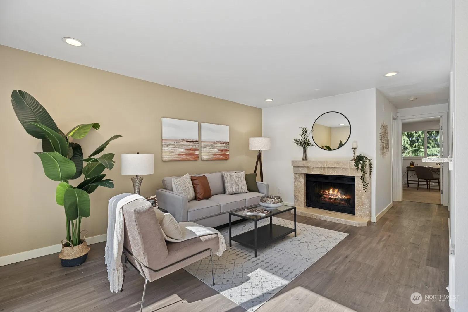Conveniently located steps away from Woodinville’s Town Center & blossoming downtown core, this fantastic top floor unit at Timber Ridge offers an opportunity to live moments away from all your favorite spots! Turn the key & move right in to enjoy a bright open layout, newer wood-style laminate floors, a cozy fireplace, in-unit laundry, a private covered balcony & updated kitchen w/ slab granite counters & ample storage. Spacious bdrm boasts large custom closet & great natural light. Freshly renovated community w/ an outdoor pool, gym, hot tub & lounge to enjoy. Leave the car at home in your designated prkng spot & explore nearby dining, shops, movies & parks! Quiet yet central location w/ easy access to Costco, wineries & freeways.