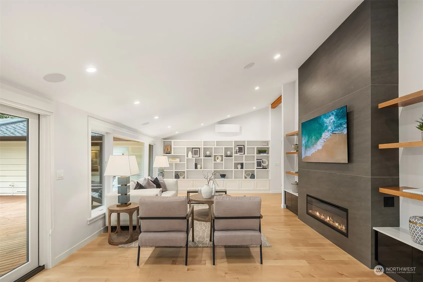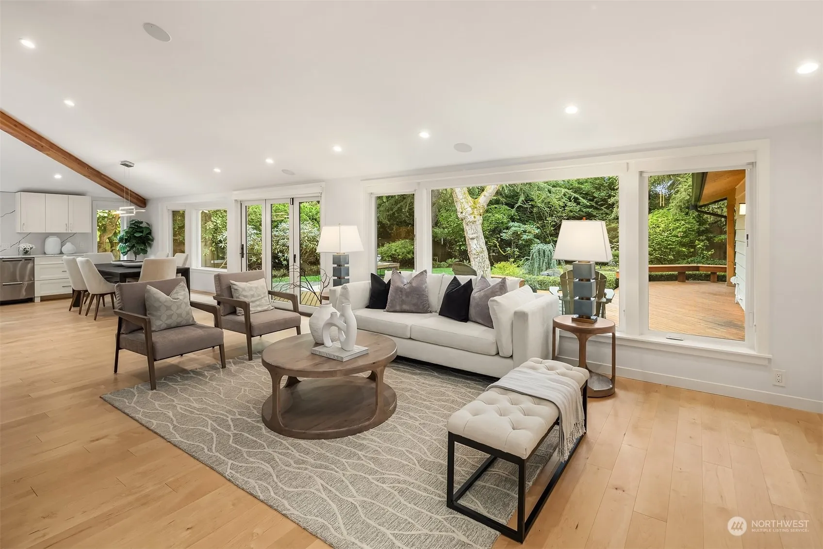 Fall in love with this beautifully renovated rambler in prized Hunts Point. In 2021, this home was transformed from the studs up into an on trend, idyllic sanctuary. The open concept design features lofty ceilings & walls of windows that fill the space w/ natural light. A striking glass pivot door opens to the office, showcasing the home’s contemporary design. Every room feels spacious & inviting. The modern kitchen boasts high-end Miele appliances & a fabulous island, perfect for hosting. Retreat to the luxurious primary suite, w/ a spa-like bath, cozy fireplace, walk-in closet, & French doors that open to your private deck. The expansive backyard is a true private oasis. Don’t miss your chance to live this fabulous, turn key lifestyle!