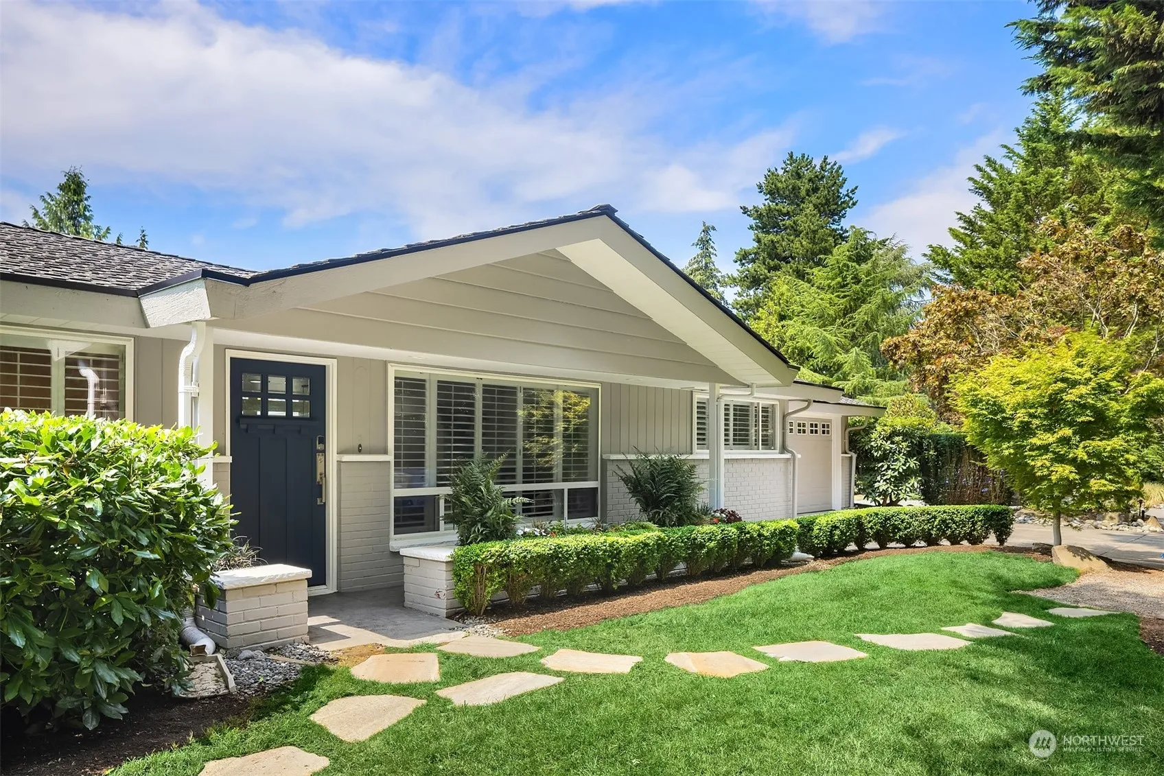 Embrace easy one-level living at this light-filled Mid Century on cherished Hunts Point. This sweet home is sited on a spacious, private .28-acre lot with mature landscaping and beautiful outdoor covered living area. Three bedrooms plus office and 1.75 baths (with updating). A recent refresh includes new paint inside and out + new flooring. The charming detached studio offers additional options for an office or play area. Two-car garage plus additional parking. Fabulous Hunts Point location close to Downtown Bellevue, parks and schools. Opportunity knocks!