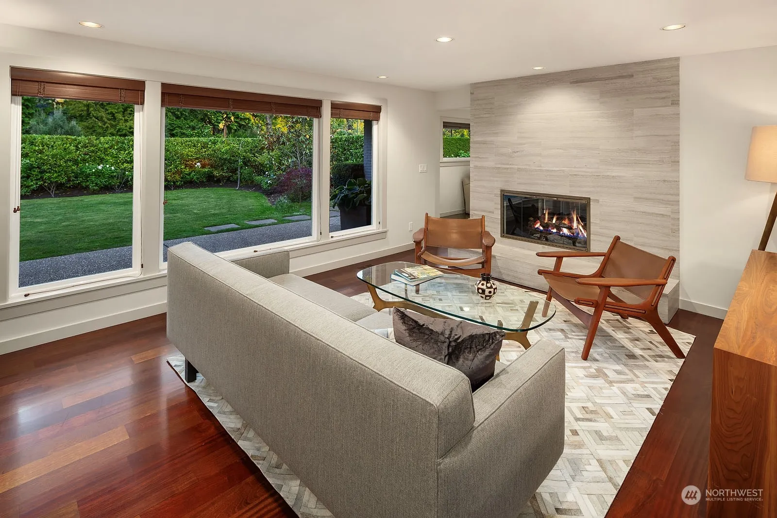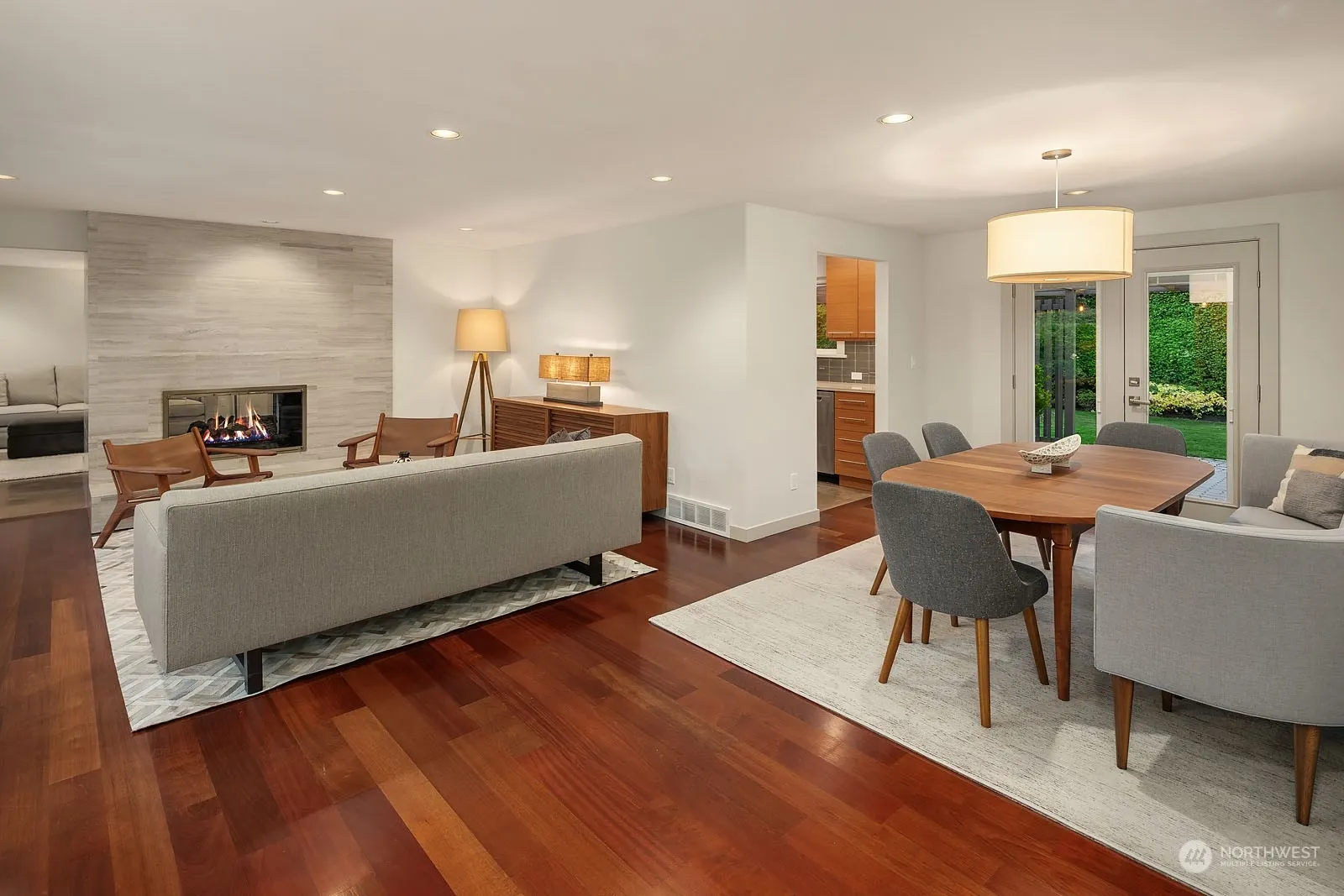 Wonderful opportunity on Hunts Point! This stunning rambler was completely renovated in 2014. Great open floor plan with generous living spaces. Spacious living room with floor to ceiling limestone gas fireplace. The dining room has French doors opening to the expansive covered patio. Cozy family room. Gourmet kitchen with custom cabinetry, slab quartz counters, stainless steel appliances. Brazilian cherry hardwood flooring and warm stained concrete floors throughout. Impeccably maintained. Central A/C. Beautiful, private level lot with mature, manicured gardens. Minutes to downtown Bellevue and Seattle. Wonderful location with easy access to the Hunts Point Park with tennis courts, play area and the Points Loop trail system.