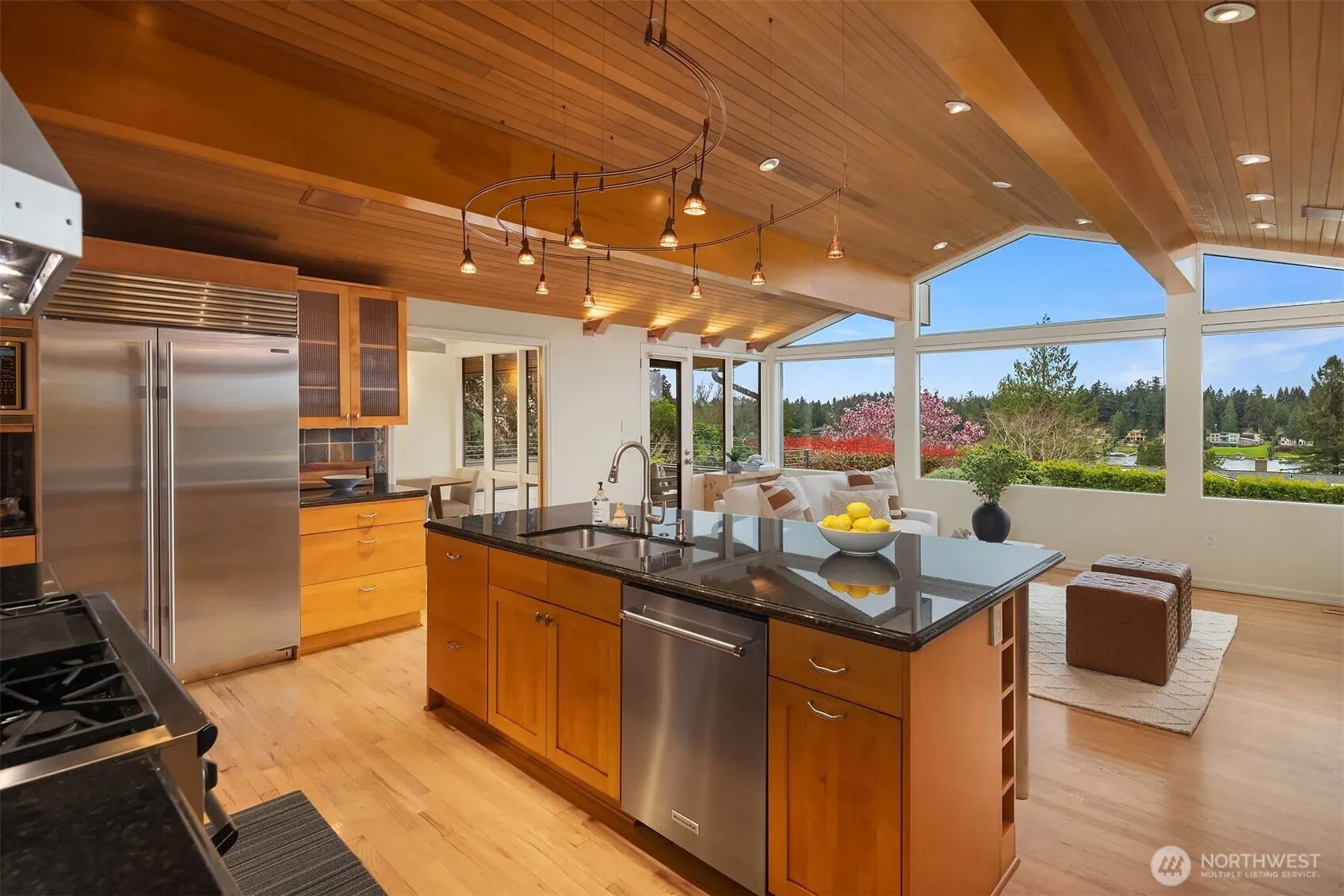 Nestled in a private setting on cherished Yarrow Point, this light-filled Northwest Contemporary boasts Lake Washington views and gorgeous sunsets from its western orientation on a spacious 15,450± sq ft lot. Relax & unwind both indoors & out with thoughtful spaces for everyday living and gathering. The expansive island kitchen + view great room w/soaring vaulted ceiling is the heart of the home. Primary + bedroom on the main with 2 additional bedrooms, office, media room and den on the lower level. Expansive outdoor living areas w/lush landscaping and a large grassy yard for play. Generous auto court makes entertaining a breeze. Just minutes to the world-class amenities of Downtown Bellevue in one of the Eastside’s favorite communities.