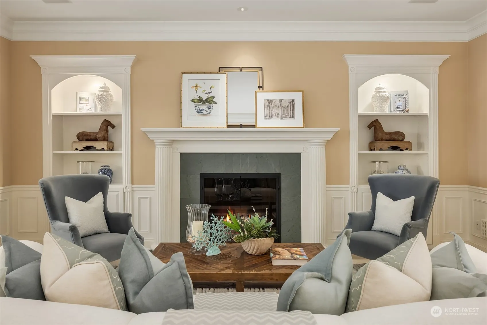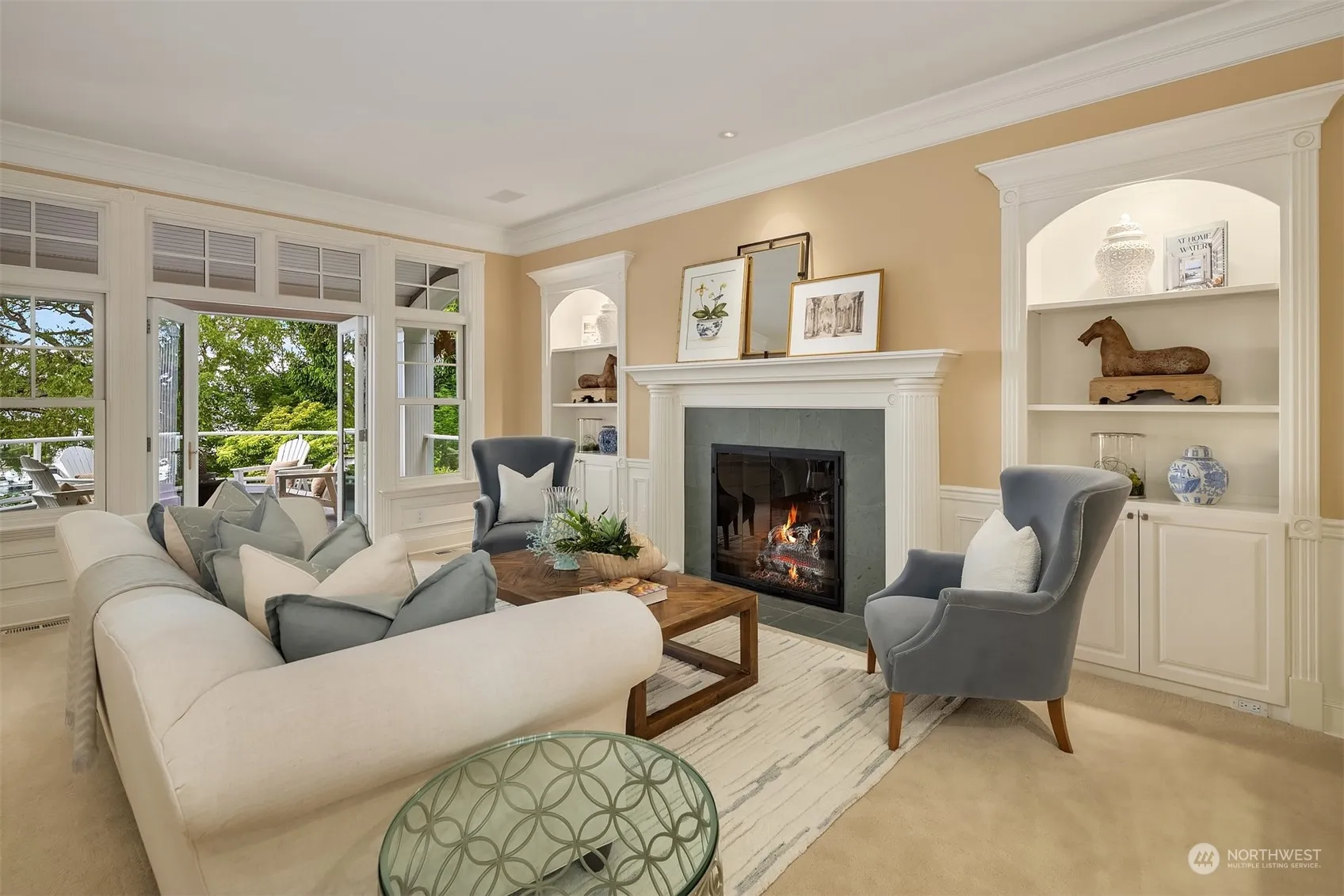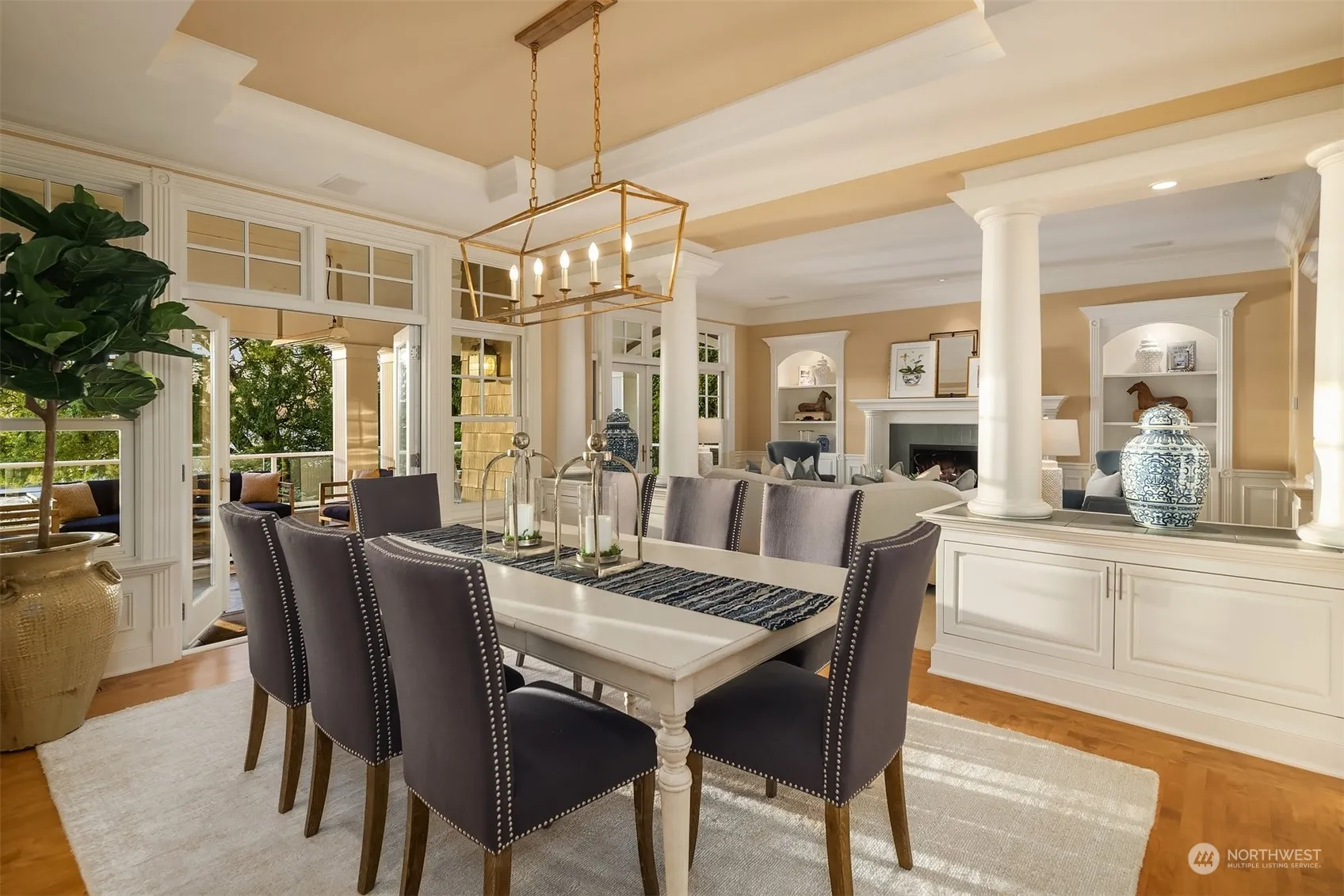 An exceptional estate with vast views and easy entertaining on the tip of Yarrow Point. Watch sunsets over Seattle from the residence and 82’ of waterfront. Ample places to recreate: Sport court, private beach, 150’ dock with boathouse, boat and jet ski lifts. And ample spaces to create: Craft room, flower cutting room, library, den. Entertain in style: Two kitchens, covered veranda with overhead heat lamps, lower-level rec room with kitchenette, wine cellar, home cinema. A private guest suite and separate dwelling quarters accommodate a larger household or an assortment of guests. Perched on a quiet lane and obscured from view by mature landscaping. Fragrant gardens, green lawns, blue sky and sparkling lakefront: the outlook here is sweet.
