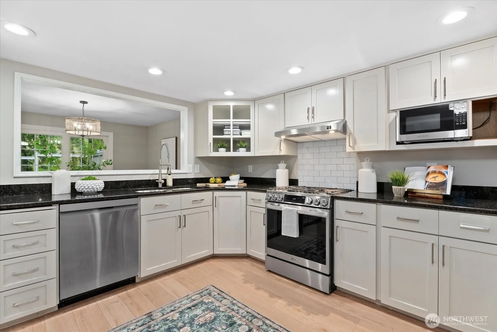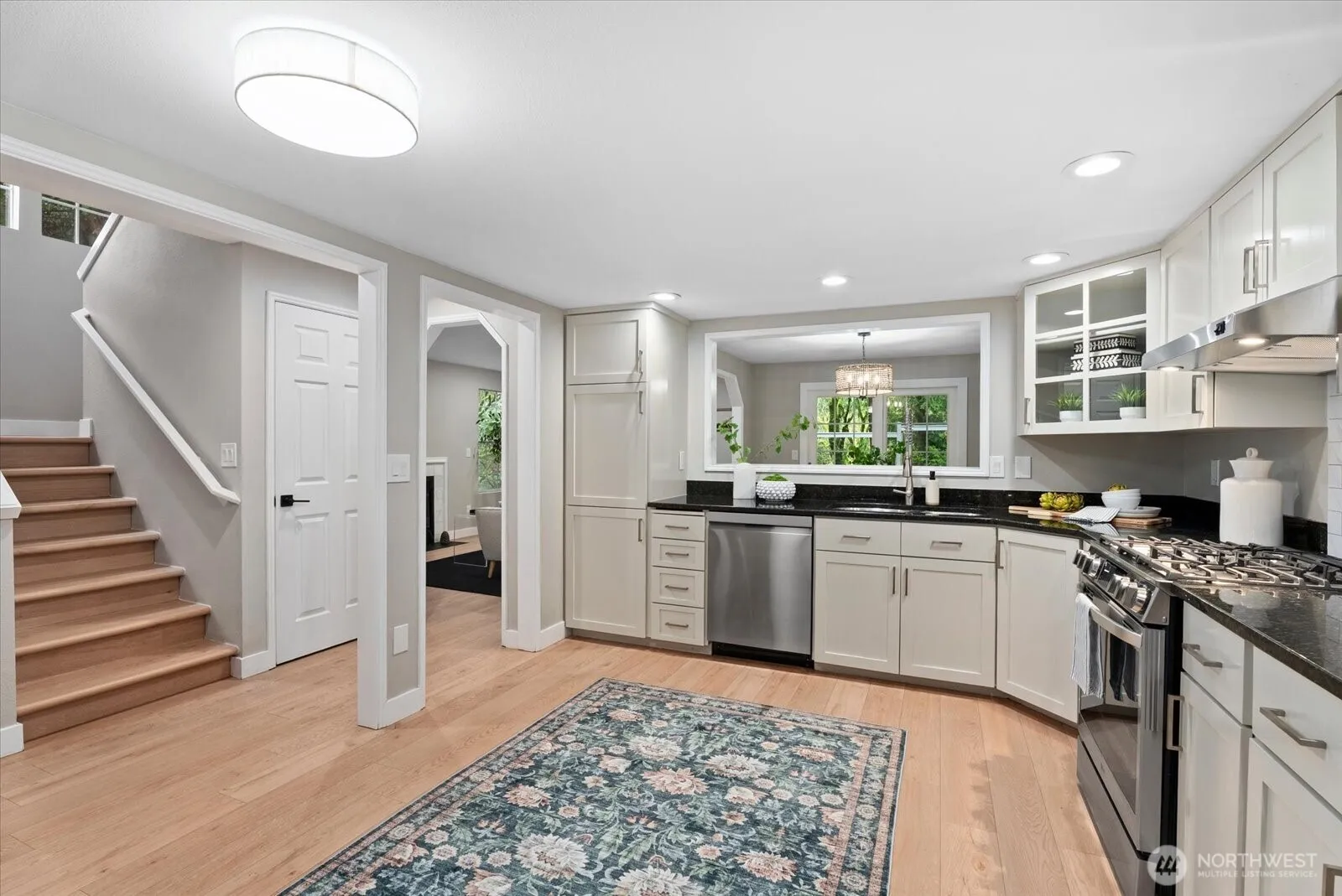 Elevated living awaits in this beautifully updated 3 bedroom, 3 bathroom single family style townhome. This move in ready home features luxury vinyl plank flooring throughout, an updated kitchen with quartz countertops, stylish cabinetry, and stainless steel appliances. A stunning color palette and modern touches carry through every room. The designer inspired updates continue into the bathrooms, and the spacious primary suite offers a huge custom walk in closet and a gorgeous spa like ensuite. All bedrooms are located on the upper level and filled with natural light. Enjoy an open, airy living area with abundant windows and a cozy gas fireplace, plus a large fenced yard and expansive patio backing to a peaceful greenbelt—perfect for quiet mornings or relaxed evenings outdoors. EV charging available. Ideally situated on the Kirkland/Redmond border, this home provides quick access to freeways, major employers, shopping, dining, and everyday conveniences. Pre inspected and ready to call home, and located within the highly desirable Lake Washington School District, this property blends comfort, style, and an unbeatable location.