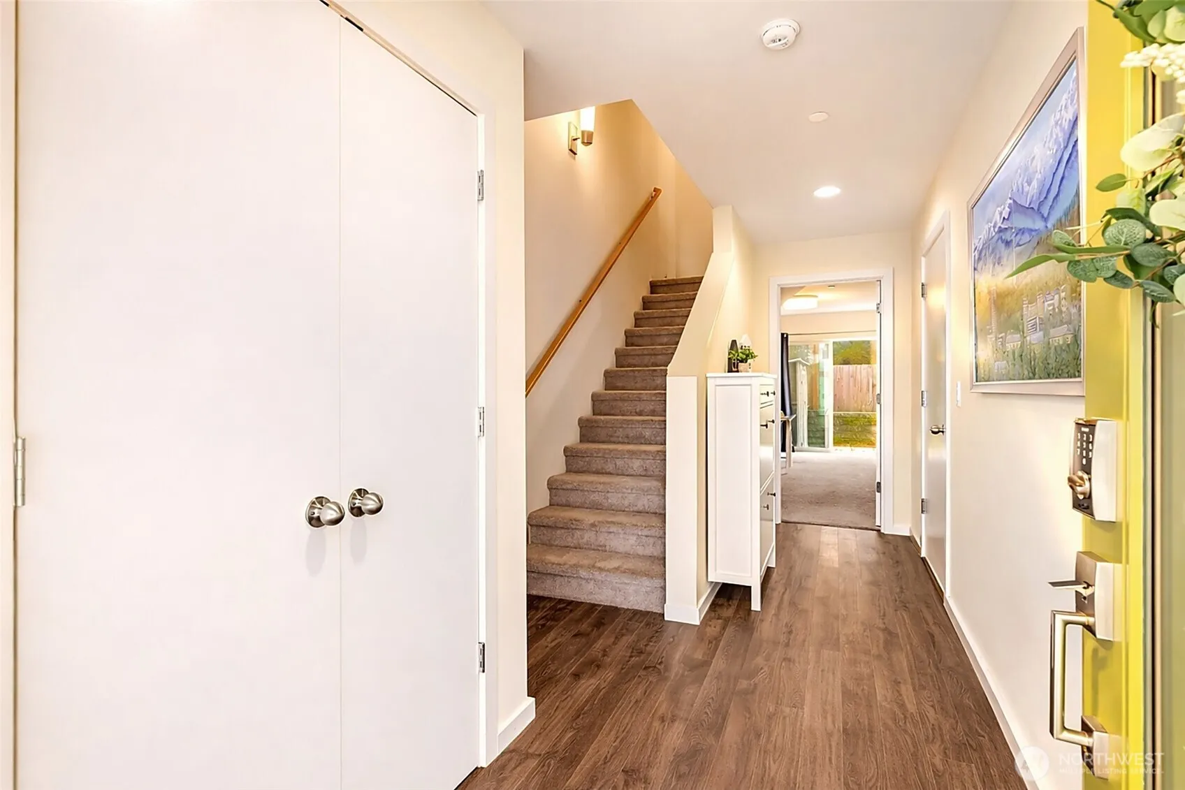 Better than new 4-bedroom townhome in Lynnwood’s highly desirable Westbrook community! Tucked away on a quiet dead-end street near Lake Stickney, this light-filled modern home offers stylish, low-maintenance living with a functional open-concept design, tall ceilings, and a spacious feel throughout. The kitchen is ideal for entertaining, featuring quartz countertops, stainless steel appliances, and an oversized island. Enjoy refined finishes, plank flooring, and a covered deck just off the dining area. The primary suite includes an en-suite bath, while the lower level offers a versatile fourth bedroom or office with access to the fully fenced backyard. A/C in the living room and primary bedroom provides added comfort. Complete with a large tandem 2-car garage with EV charger, low HOA dues, and a convenient location near Alderwood Mall, Costco, Mill Creek Town Center, I-5, 405, park & ride, and light rail.