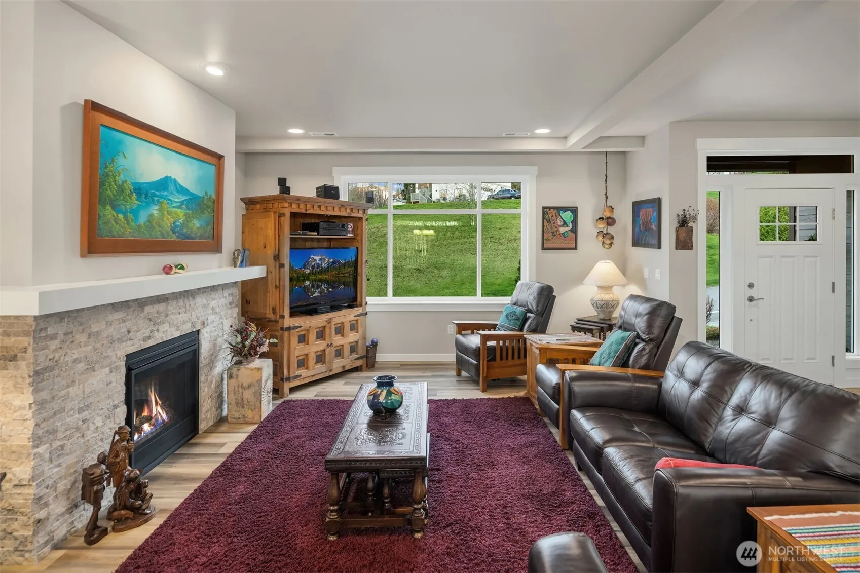 Scenically poised on a shy acre greenbelt oasis in esteemed Whisperwood Estates, this pristine 2,500sf 2020 two-story boasts stunning craftsman curb appeal with spectacular views of nearby rolling foothills & Cascade mountaintops! Dramatic open floor plan with spacious rooms, tall ceilings & oversized windows filled with abundant natural light. Foyer with open rail staircase leads to grand living room with custom textured stone gas fireplace, dining room with vaulted covered deck & elegantly appointed dream kitchen with quartz counters, full-height glass tile backsplash, center island bar & tons of storage space. French doors lead to main floor den/5th bedroom with walk-in closet. Lofted upper hall with office nook leads to double-door primary with sweeping views, walk-in closet & designer 5-piece ensuite with soaking tub & luxurious rainfall shower. Generously proportioned bedrooms + top floor laundry & hall bath with convenient dual-sink vanity. Sprawling backyard extends through the forest all the way to Woods Creek. Huge driveway & massive 3-car dream garage + extra tall crawlspace with bonus room upside potential, high-efficiency furnace with heat pump & central A/C!