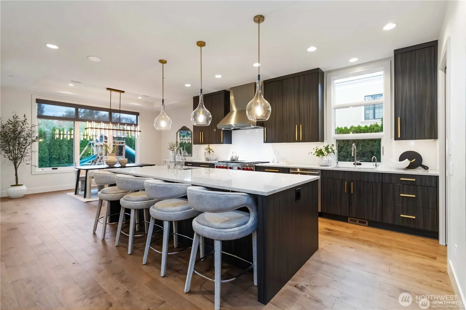 Custom-built by Bordner Construction in October 2022, this modern, minimalistic home blends luxury and comfort in Medina. A dramatic entry opens to light-filled living spaces with Lutron smart lighting and refined finishes throughout. The chef’s kitchen features custom cabinetry, quartz countertops, high-end appliances, and a butler’s pantry. The main level includes a bedroom that can also serve as an office. Upstairs, the owner’s suite offers a fireplace, balcony, dual closets, and spa bath. The lower level features a media room, wine cellar, and guest suite. Enjoy a flat backyard with covered patio, outdoor kitchen, and heaters—just minutes from Bellevue, dining, parks, and top-rated schools.