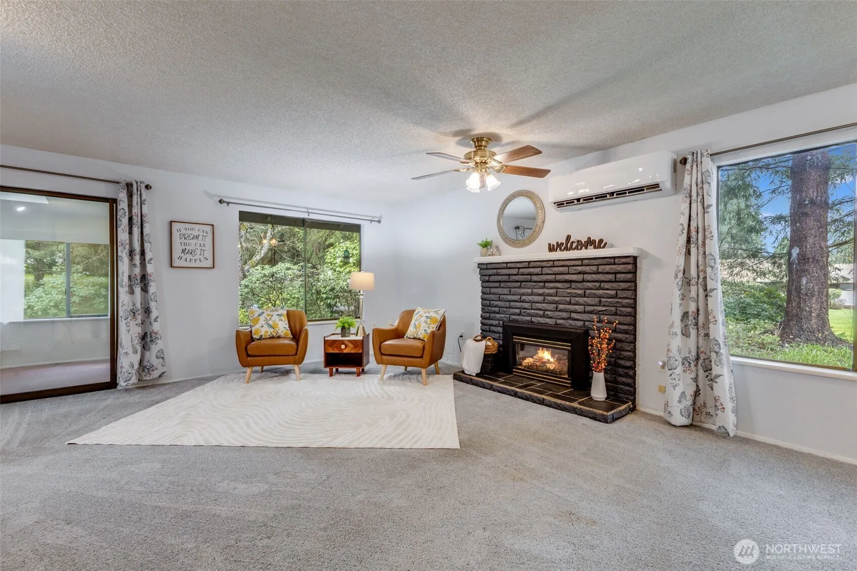 Welcome home to this lovely rambler in the highly desirable 55+ Vista Village community, where comfort, convenience, and peaceful living come together! Tucked in a beautifully maintained neighborhood known for its mature landscaping, tranquil setting, and frequent visits from local deer, this charming 2-bedroom home offers easy single-level living close to shopping, dining, medical services, parks, and everyday amenities in the heart of Lacey.Inside, you’ll find a nicely maintained floor plan with a spacious central living area featuring large picture windows and a cozy propane fireplace. The bright sunroom is a true highlight—complete with skylights and a solar tube—creating the perfect space to relax and enjoy garden views year-round. A covered back patio adds even more room to unwind outdoors. Recent updates include newer interior paint and carpet, newer bathroom vanities, newer kitchen stove, newer roof, new attic insulation, and a newer electrical panel. The convenient 1-car garage includes abundant built-in storage. Sprinkler systems help keep the grounds lush and green, and the community clubhouse offers a wonderful place to gather with friends. Come enjoy the beauty and tranquility of Vista Village!