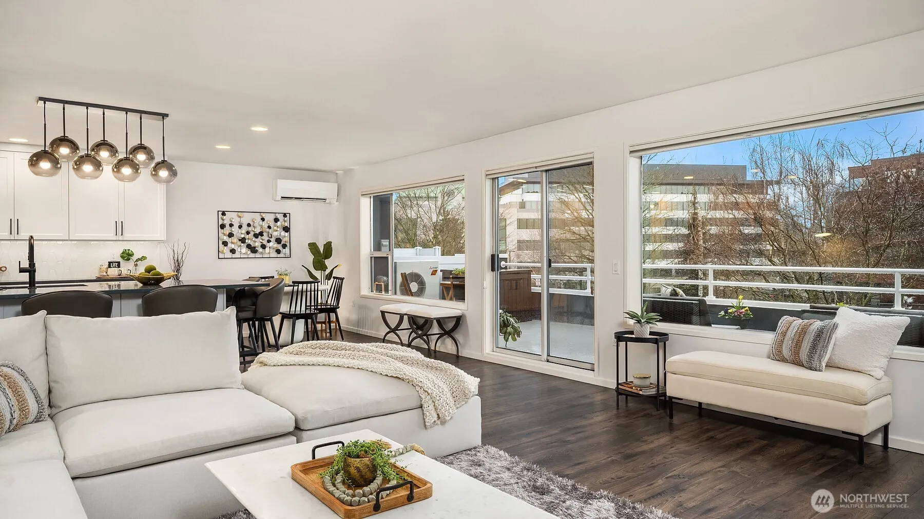 PRICED REDUCED $200,000 OVERALL! Do not miss this one! Enjoy effortless single-level living just steps from downtown Kirkland, w easy access to Lake Washington, the waterfront, dining, & Kirkland Urban. This beautifully renovated corner-unit offers a rare combination of comfort, convenience, & low-maintenance living in a highly walkable location. The updated kitchen features an expansive quartz island, double ovens, beverage cooler, & abundance of cabinetry, opening to a spacious living & dining area designed for everyday ease. Large windows fill this home w natural light, while the layout extends to an expansive deck w sunset views—perfect for relaxing or entertaining. Stay comfortable year-round w air conditioning. The primary suite includes a walk-in closet & remodeled ensuite bath w dual sinks, while the 2nd bedroom & full bath offer flexibility for guests, a home office, or evolving lifestyle needs. Located in a boutique 14-unit secure building w elevator access, 2 gated garage parking spaces & dedicated storage. The grassy area just outside your front door provides a rare outdoor option for pets or unwinding. No rental cap adds valuable flexibility for long-term use, as a primary residence or future investment. Guest parking is a breeze! Walk to the Cross Kirkland Corridor, Peter Kirk Park, shopping, cafés, & easy access to I-405 & 520. A seamless blend of comfort, flexibility, & lock-and-leave simplicity in one of Kirkland’s most walkable & desirable areas.
