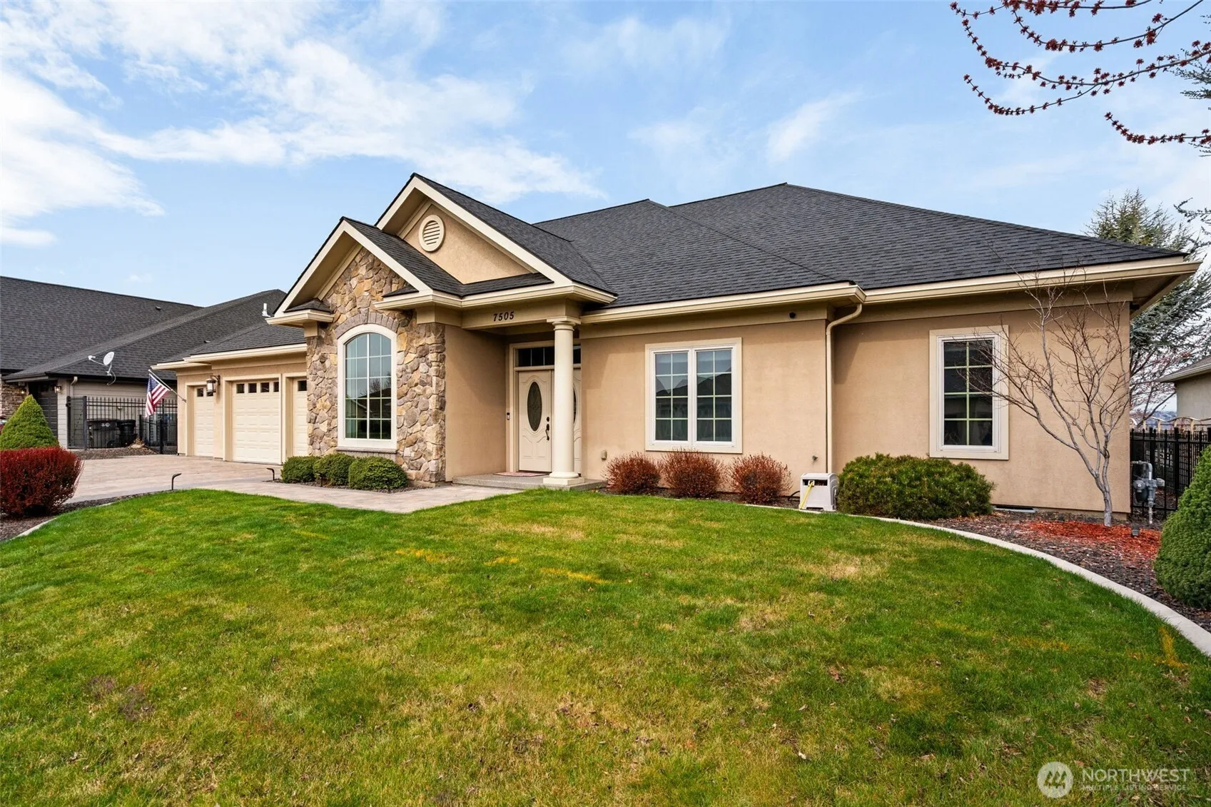 Enjoy breathtaking valley views from this beautifully maintained single-level home in West Valley Yakima. Situated on a spacious .27-acre flat lot, this solidly built, move-in ready home offers comfort, privacy, and an unbeatable location on a quiet, non-through street. Large windows fill the home with natural light while perfectly framing the stunning valley views. The open great room features high ceilings, crown moulding, and a cozy gas fireplace, creating an inviting space perfect for relaxing or entertaining. The thoughtfully designed floor plan places the primary suite on the opposite side of the home from the additional bedrooms, providing added privacy. The primary bathroom features heated floors, adding a touch of everyday luxury and comfort. Additional highlights include a 3-car garage with dedicated workspace, ideal for hobbies, projects, and extra storage including a drop down ladder for additional storage above the garage. Located in a quiet West Valley neighborhood on a non-through street, this home combines peaceful living with convenient access to shopping, dining, and everyday amenities.