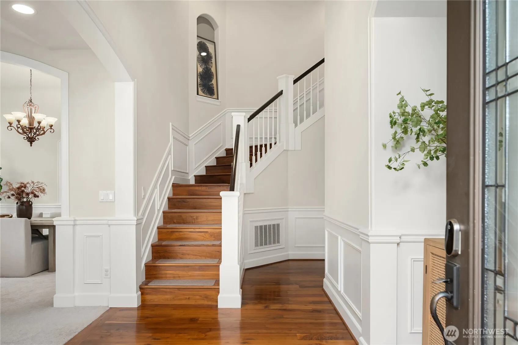 This highly sought-after Rose Hill house offers exceptional privacy, abundant natural light, and a spacious open layout designed for modern living. A dramatic double-door entry with soaring ceilings welcomes you into the expansive main level, ideal for both everyday living and entertaining. The chef’s kitchen features gas cooking, granite countertops, a walk-in pantry, and access to a large deck for gatherings. The MAIN floor also includes a generous BEDROOM and 3/4 BATH, perfect for guests or multi-generational living, plus two fireplaces that add warmth and charm. Upstairs, the primary suite is a true retreat with a double-sided gas fireplace and spa-inspired bath. Two additional bedrooms and an oversized media room provide flexible space for work, play, or relaxation. The oversized 3-car garage offers exceptional versatility. Recent updates include a new furnace and fresh interior paint. Enjoy a friendly, well-connected community with close neighbor relationships and frequent activities. Prime location minutes to Google, Microsoft, Totem Lake Village, Juanita Beach, and walking distance to the Kirkland Boys & Girls Club, all within the award-winning Lake Washington School District! Welcome home!