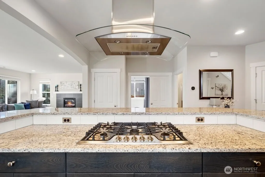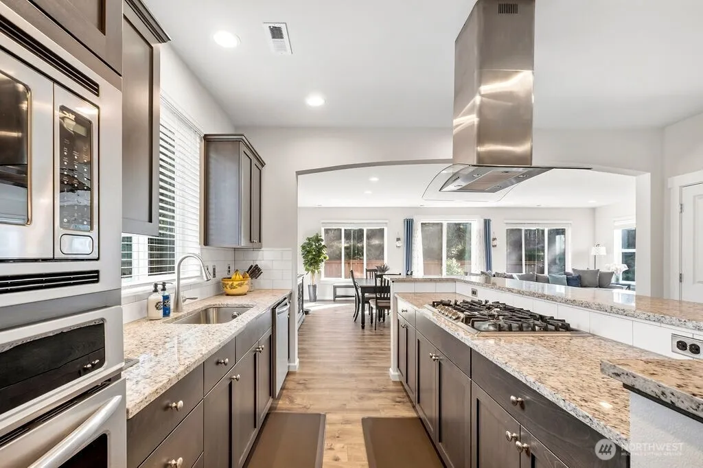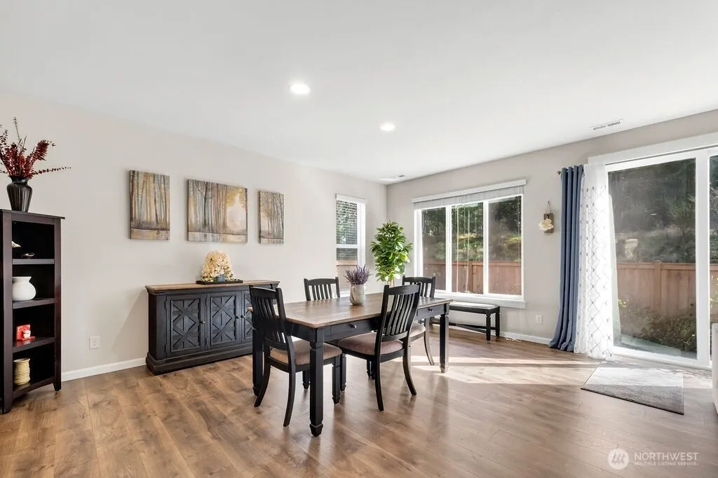 Welcome to this spacious Signature Collection D.R. Horton property offering over 3,000 sq ft on a premium lot as it backs to green space for added privacy. Built in 2018, this property stands apart offering larger square footage and upgraded finishes. The home features five bedrooms and 3 bathrooms, including a main-level bedroom and bath ideal for guests or flexible living. The open-concept kitchen includes solid surface granite countertops, a massive island with gas cooktop, and flows into the main living space boasting wide-plank Mohawk engineered hardwood floors and a delightful gas fireplace. Upstairs, the spacious primary suite includes a five-piece bath and dual walk-in closets, including one oversized closet. Additional upgrades include central air conditioning, tankless water heater, and well sized media room. With completed landscaping in front and rear yards, upgraded flagstone pathway, and interior upgrades already in place, this move-in ready home offers a convenient alternative to new construction. Blinds and window coverings along with like new interior spaces makes this a must see.