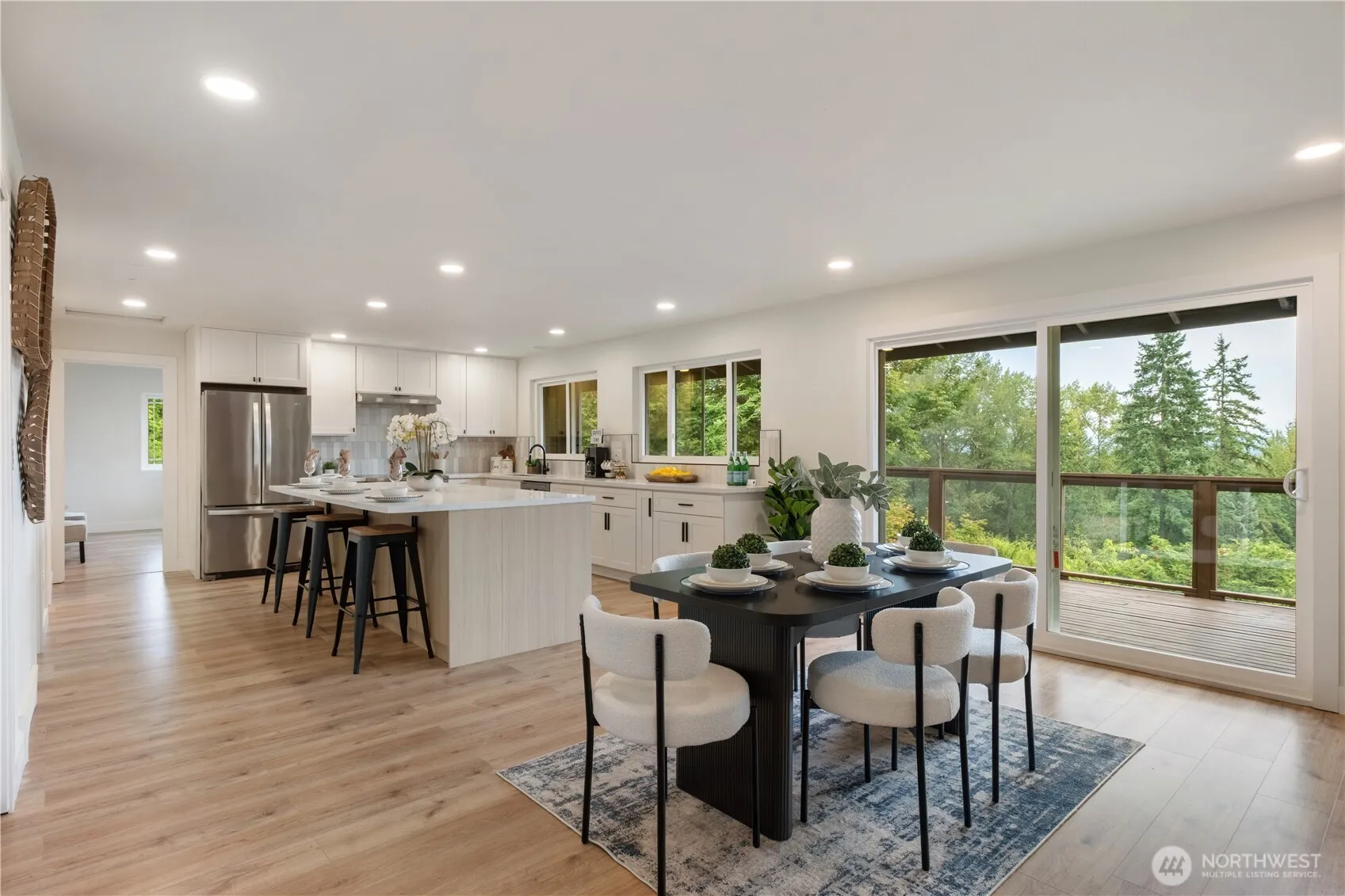 Your dream home awaits with breathtaking views and thoughtfully curated luxury features throughout. From the moment you arrive, you’ll feel the balance of peaceful country living and modern comfort that defines this property. At the heart of the home is a chef-inspired kitchen designed to gather and impress, featuring a 36” professional range, an expansive island with abundant storage, sleek quartz countertops, and a seamless flow into the dining and living room. This open-concept layout creates the perfect setting. Primary suite offers a true retreat, complete with a spacious walk-in closet, private deck access, and a spa-like bathroom designed for relaxation. Unwind in the soaking tub or enjoy the beautifully designed walk-in shower with custom tile work that adds a touch of elegance and character. The flexible floor plan provides room to grow and adapt, with three additional bedrooms and a cozy family room that invites connection. The lower level expands the possibilities, featuring a wet bar, bathroom, and an additional bedroom ideal for a potential MIL suite, multi-generational living, or extended guest stays. Step outside and take in everything this property has to offer. An oversized patio and large deck create the perfect backdrop for entertaining or simply enjoying the surrounding views. For those seeking space and functionality, the property includes a small horse or animal stable, an an open barn, and multiple opportunities for hobbies, storage, or future use
