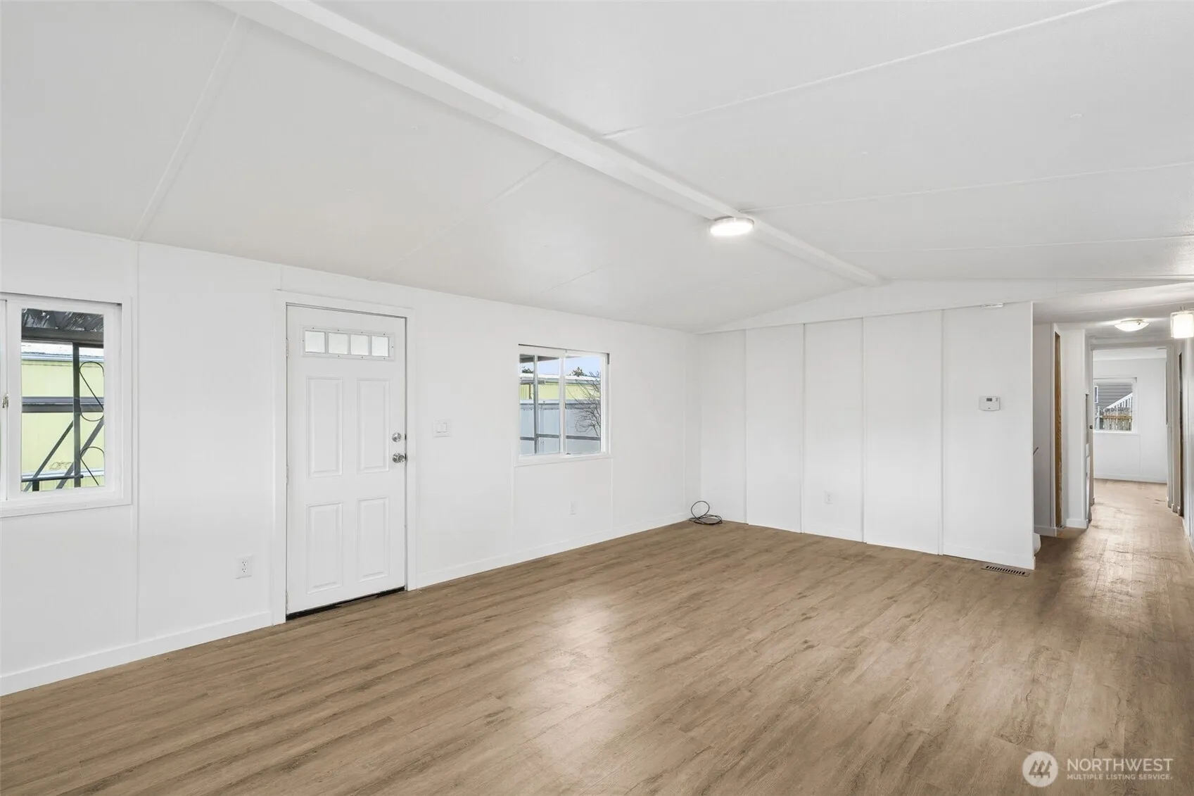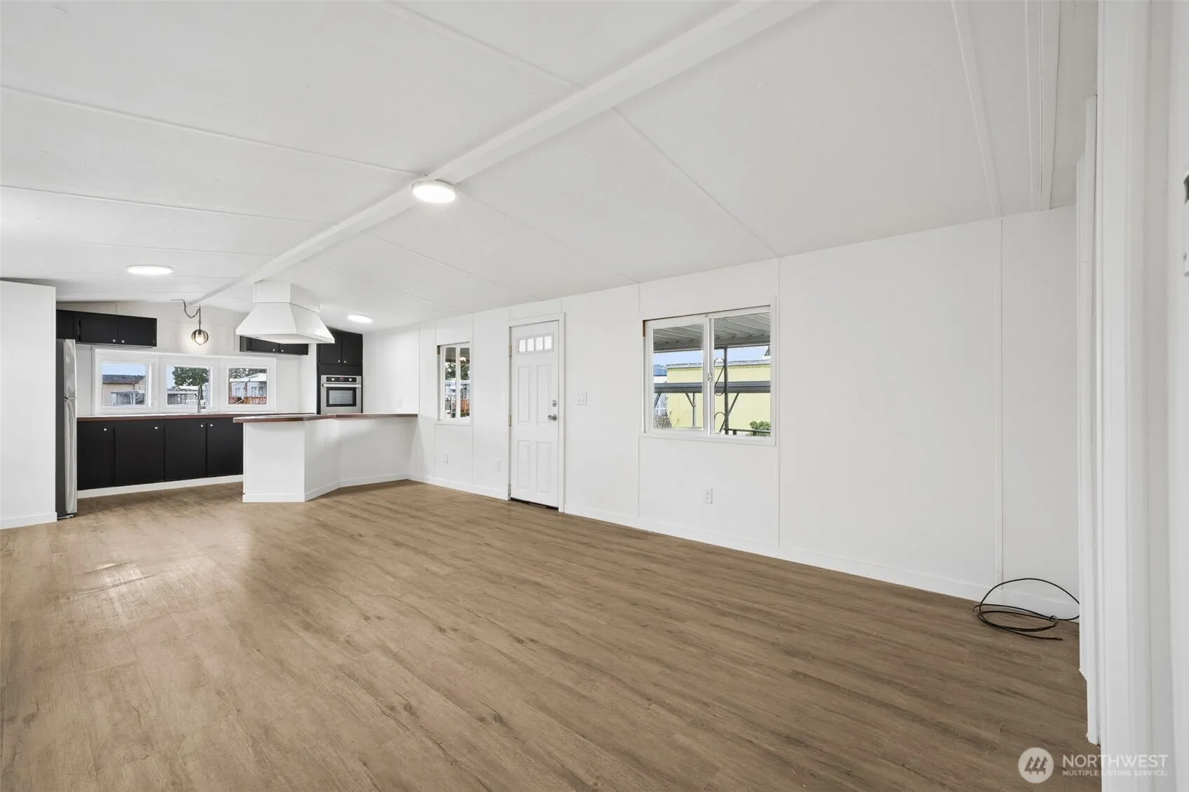 Simple Enumclaw living! Located in the 55+ neighborhood of Mountain Villa Estates, this home is tastefully updated with fresh paint, new appliances & new LVP flooring. 2Bed/1.5 Bath, including one walk-in shower, an open floor plan, and in-home laundry connections. Generous covered front porch & a small yard offer space to enjoy the outdoors. Carport +1 extra space and a dedicated storage shed. The neighborhood offers valuable amenities with an active clubhouse, open park spaces & RV storage. Located just off Hwy 410, moments from the Foothills Trail, local grocery stores, and restaurants. Roof, plumbing, windows, and wiring have been updated over the years. This is the best VALUE in town.