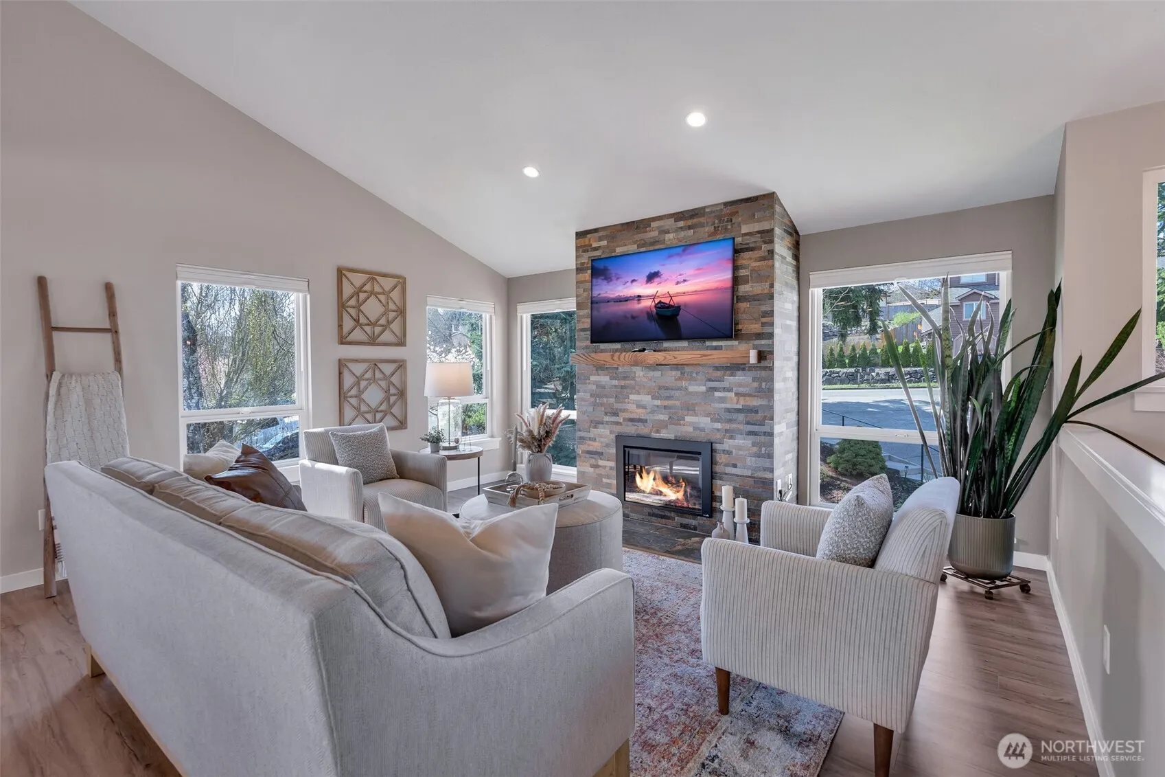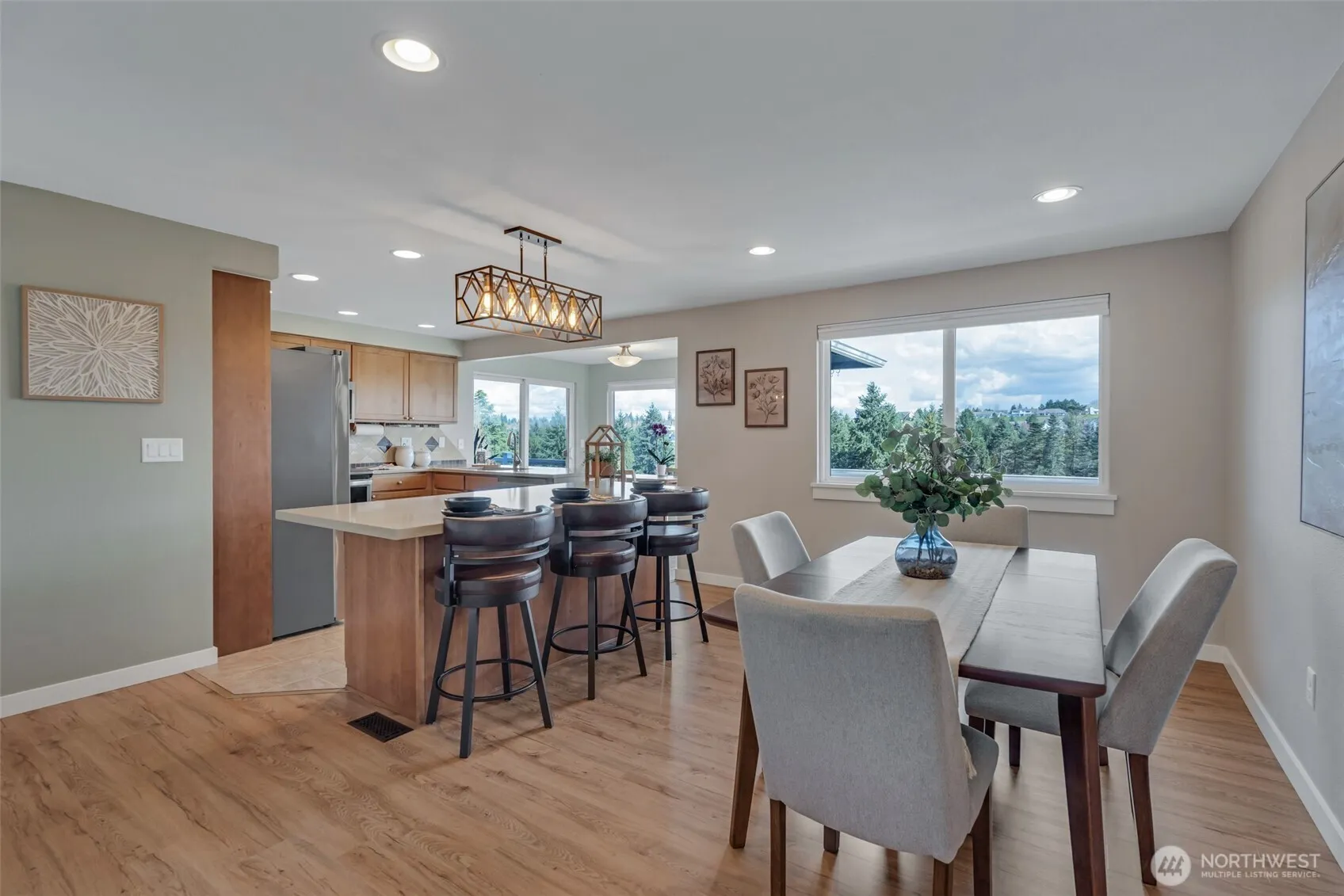 Stunning, meticulously maintained home just off Northshore Golf Course. Beautiful landscaping & fresh paint create standout curb appeal & welcome you home. The formal living room features newer LVP flooring, vaulted ceilings, abundant light & electric FP w/stone surround. The light-filled kitchen offers newer stainless appliances, quality cabinetry, tile backsplash & island w/eating bar overlooking the dining area. Enjoy exceptional mountain views from kitchen & decks. An add’l dining nook w/deck access creates seamless in/outdoor entertaining. The spacious primary suite includes private deck access, walk-in closet & spa-like ensuite w/custom tile work. 2 add’l bedrooms & updated full bath complete upper level. Downstairs, the oversized rec room offers flexibility w/wet bar, pellet stove, & access to the covered lower deck. This level also includes a den/office, bedroom, full bath & utility room w/abundant storage. Enjoy a private setting w/mountain & golf course views from dual-level decks, along w/terraced gardens, patio space & storage shed. The partially fenced yard offers flexibility for pets. True pride of ownership reflected in major updates including a 30-year roof (2016), high-efficiency furnace & A/C & updated electrical panel. Meticulously cared for & move-in ready, feels like new. Conveniently located near schools, parks, golf, stores, restaurants & beaches. Experience the comfort, quality & lifestyle this exceptional home offers!