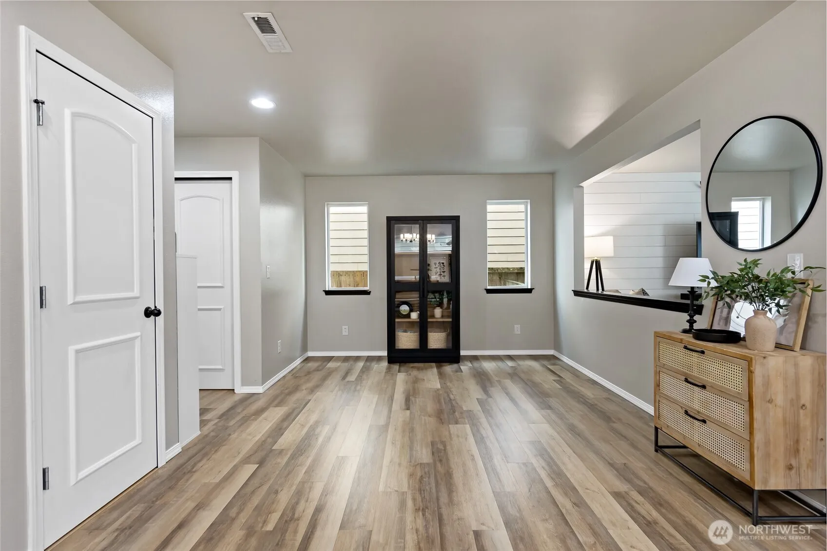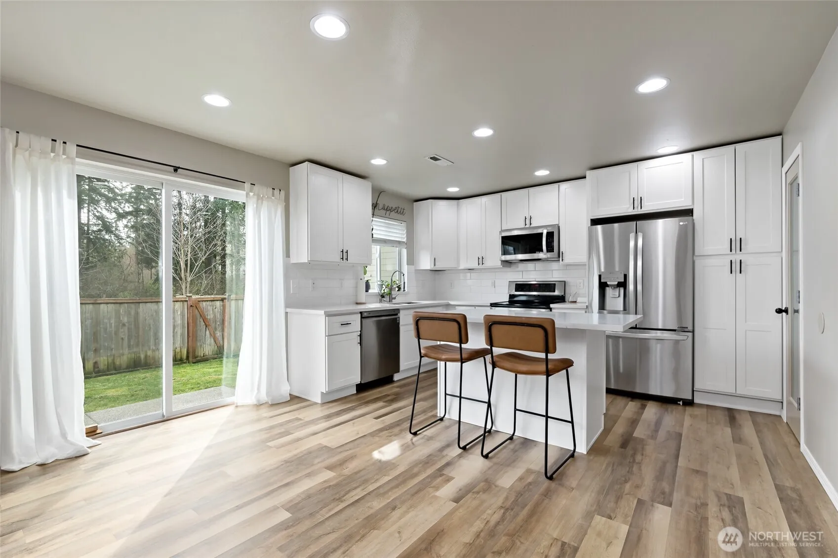 Bright and fresh move in ready home. Large entry way opens to a designated living space and formal dining room. Kitchen boasts a walk in pantry, solid surface countertops and large island, perfect for cooks and hosts alike. Half bath convienently located on the first floor. Upstairs you’ll find the large primary with attached bathroom and walk-in closet. Three additional bedrooms, a hall bathroom and the laundry room also on the upper level. Fully fenced back yard with oversized patio perfect for relaxing or grilling. Groceries, shopping and dining nearby!