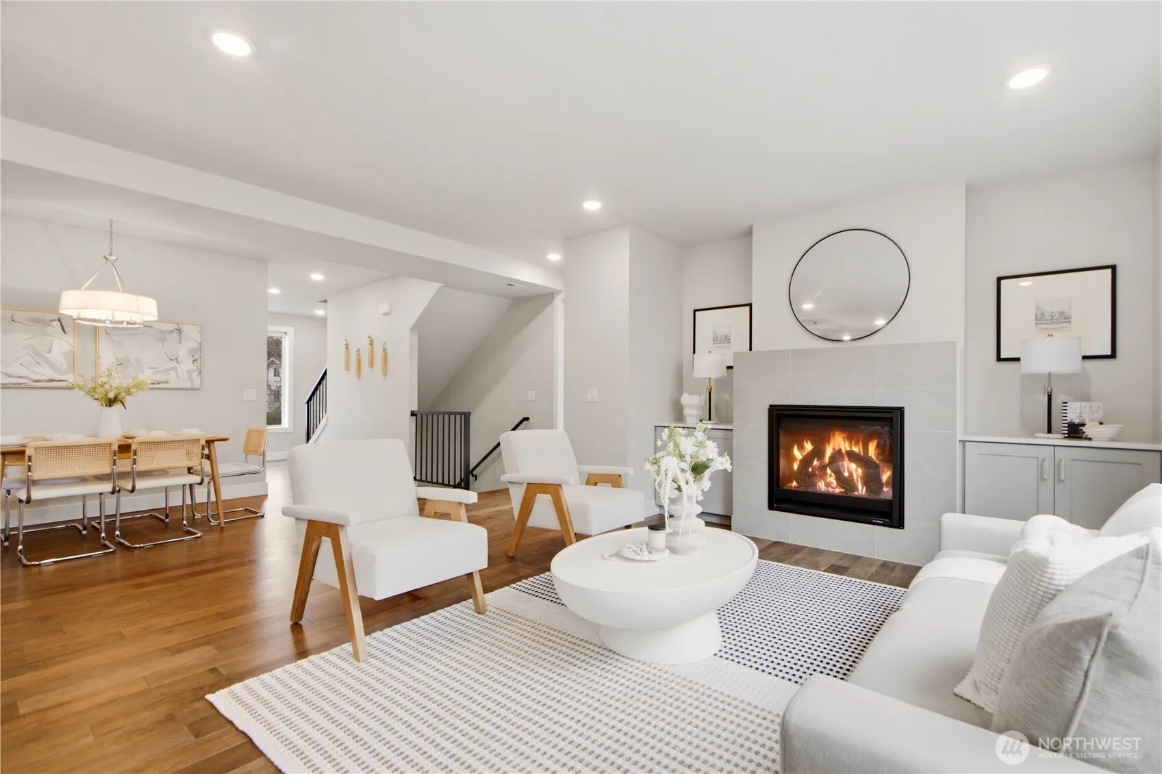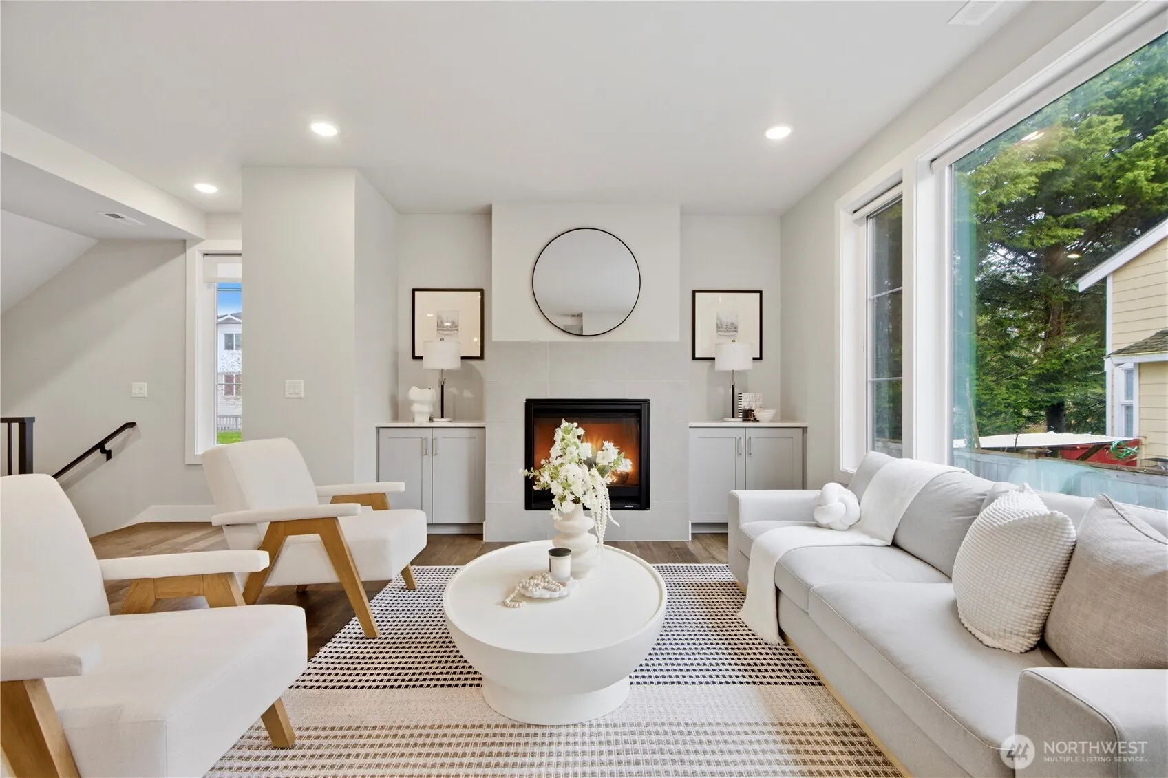 Set on a private road in the nine-home Rivendell community, this 2019 contemporary offers flexible modern living with two-minute access to I-405, putting Google, Microsoft, Totem Lake Village, and EvergreenHealth close at hand. Nearly 3,000 square feet unfolds across three well-planned levels with hardwood floors, high ceilings, and south-facing windows that fill the home with natural light throughout the day. The open great room anchored by a gas fireplace connects to a kitchen that opens to both dining and the view deck. Mountain and territorial views add a welcome sense of openness at the end of the day. Five bedrooms and 4.25 baths include a primary suite with walk-in closet plus a second primary option for guests, extended living, or added privacy. The lower-level one-bedroom suite has its own private entrance, sliding door to the backyard, and full bath, creating flexibility for extended living, workspace, or rental potential. Built to 4-Star Built Green standards with a heat pump, central A/C, and metal roof, the home is designed for efficient, low-maintenance living. The Boys & Girls Club is a short walk away — daycare and summer programs close enough to make the daily routine easier. Lake Washington School District—Twain Elementary, Rose Hill Middle, Lake Washington High—along with Totem Lake’s restaurants, Cinemark, Whole Foods, and Costco put daily life within easy reach. 10-year structural warranty in place through 2030.