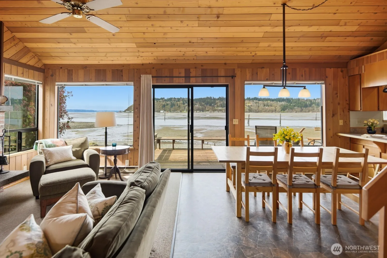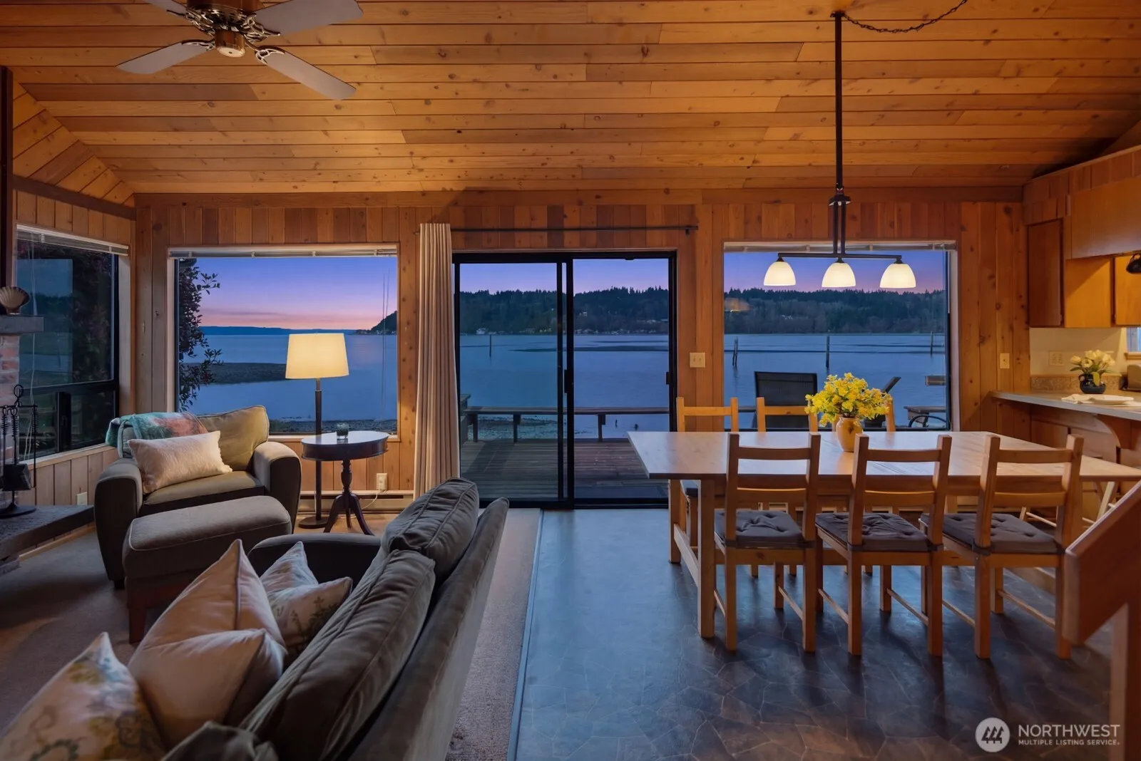 Where Time Slows & Memories Last Forever! Rarely do you find a no-bank waterfront home that has been lovingly maintained for 50 years! Located in one of the few residential communities that offers moorage, this enchanting beach house has the primary bedroom on the main next to a full bath, plus two rooms upstairs with a 1/2 bath tucked between. Winter storm watch next to a cozy, large wood-burning fireplace in a stunning great room beneath a vaulted cedar ceiling. Prepare meals with ease using new stainless steel appliances ~ 2025 stove, 2023 dishwasher & refrigerator. Summer beckons on the large deck to enjoy a front row seat to the community 4th of July fireworks over Cultus Bay, the evening firepit, and a sandy beach where you can explore, swim, kayak, paddle board, crab, or clam, all from your beachfront perch. Enjoy sweeping views to the west of the Olympics and Puget Sound shipping lanes where cruise ships glide by all summer long ~ every day will feel like a seaside escape! Nestled in the quaint community of Sandy Hook Yacht Club Estates, just 3 doors from a refurbished pool and clubhouse with picnic area, shuffleboard court, and playground, or take a short stroll to tennis and pickleball courts, the park, or a boat launch and marina. With west-facing sunsets over the Olympics, eagles perched in the bay, and abundant marine life, your shoulders will drop, and you will have unforgettable memories that are part of the view!