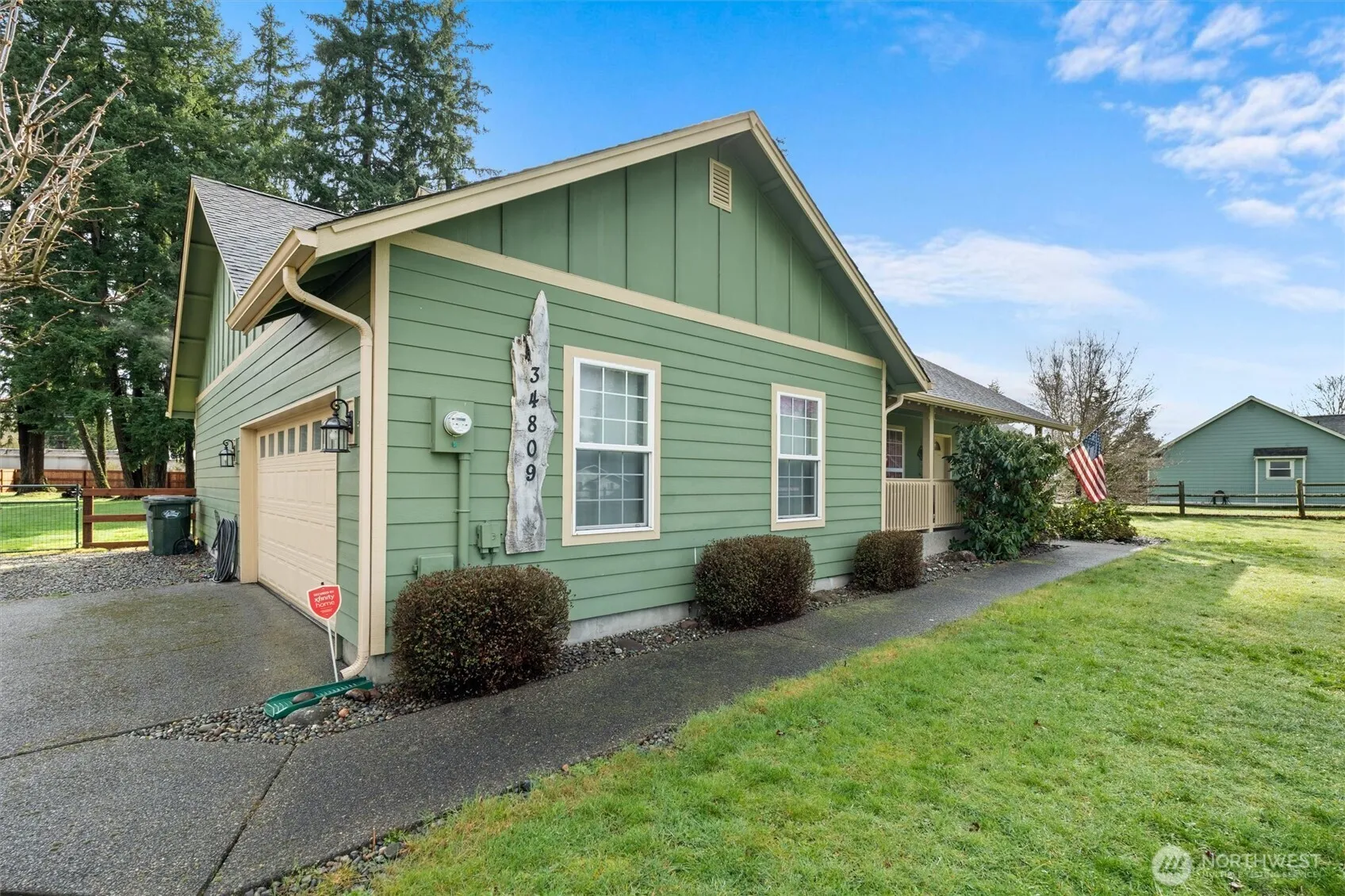 Immaculate rambler in the desired equestrian gated community of Whitewater Estates. This move in ready 3 BR, 2 bath home has a spacious kitchen, walk in pantry, solid oak cabinets, & oak hardwood floors throughout. Spacious living room and dining room w/lots of windows, vaulted ceiling, and woodstove. Kitchen w/skylights that opens to secluded backyard perfect for entertaining. Large garden and fire pit. Or relax on the large covered front porch. Spacious primary with ensuite w/garden tub, and walk in closet. Large laundry room with half bath. Easy commute to JBLM east gate and shopping. Community features include trails, horse arena and river access. Current owners have put in $40K+ of cedar fencing fully fencing and cross fencing property. Beautiful gated community. This is a must see!