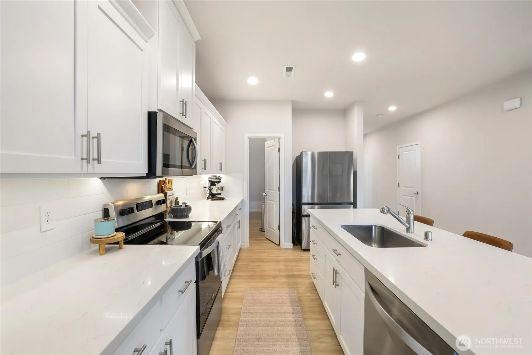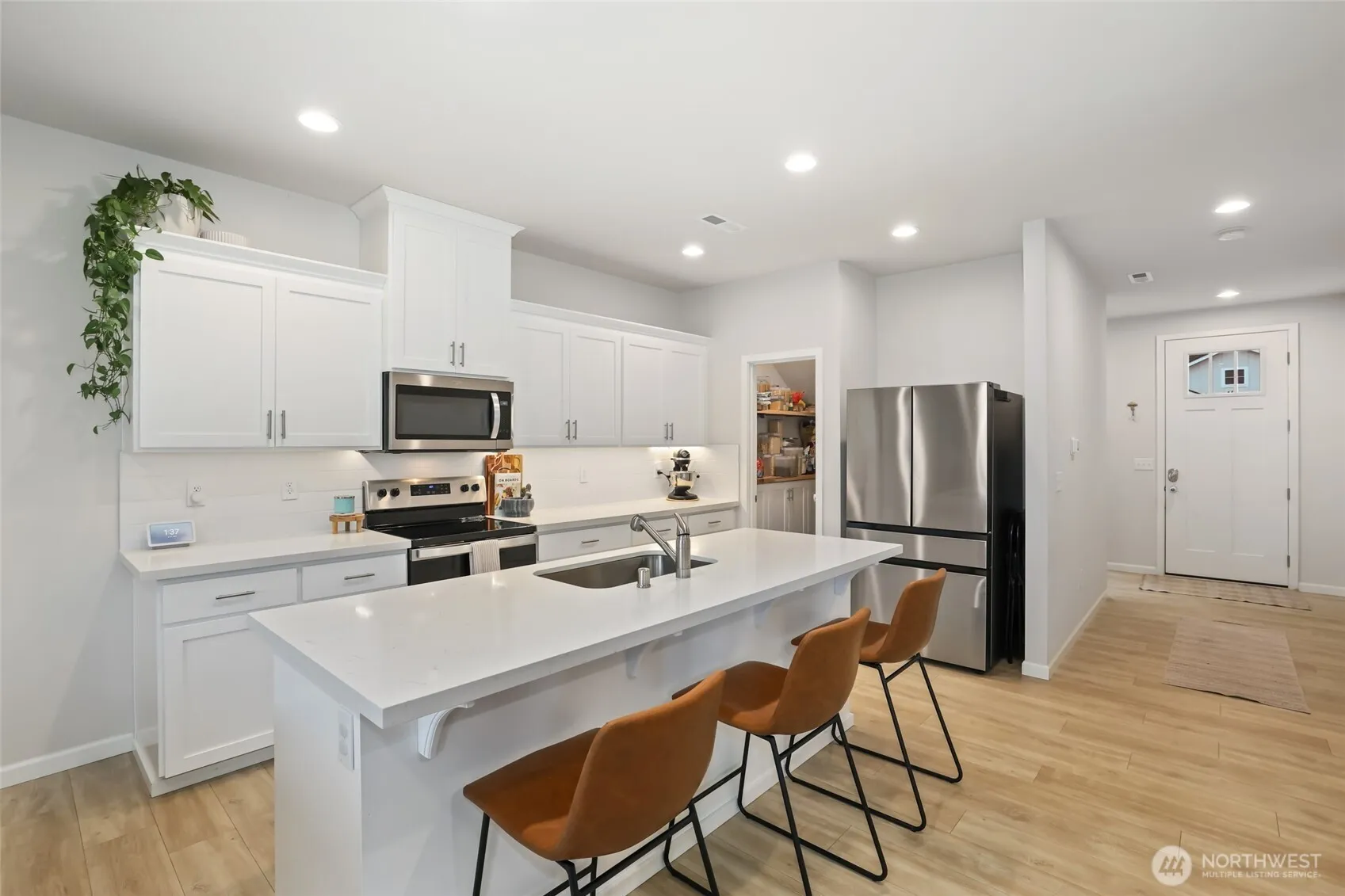 Welcome to this better-than-new Sager Homes resale featuring the popular Camano plan! This 1-owner home has been meticulously maintained and thoughtfully upgraded, offering 2,107 sq ft, 4 bedrooms + loft, and 2.5 baths. The open-concept main level is perfect for everyday living and entertaining, with a spacious kitchen, dining, and living area plus a dream walk-in pantry. You’ll love the charm and custom touches throughout, including built-ins around the fireplace, stylish accent walls, and designer wallpaper. All appliances are included, along with a 1-year home warranty for peace of mind. Upstairs features a large primary suite, three additional bedrooms, a versatile loft, and a laundry room with built-in cabinetry. Step outside to your oversized, fully fenced backyard backing to peaceful green space—complete with a covered patio ideal for year-round enjoyment. Overhead storage spans the spacious 3-car garage. Low HOA dues include access to a community park with a play area and dog park. Prime location with easy access to JBLM, shopping, and dining. Plus, take advantage of a VA assumable loan at an incredible 4.625%—well below current market rates! Welcome home!