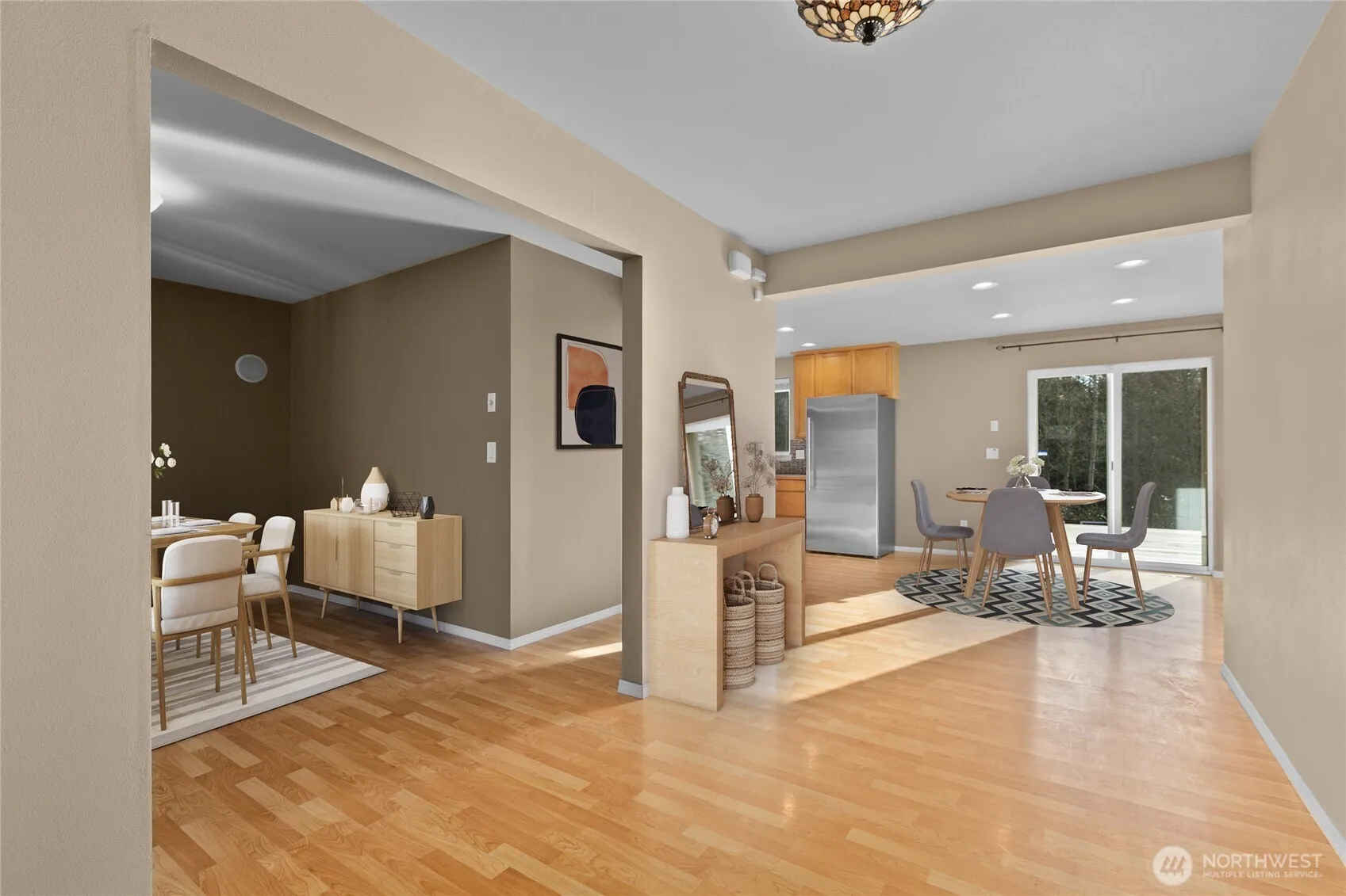 Discover your private homestead dream on nearly 10 acres of versatile, potentially dividable land (area behind and north of the shop). This welcoming 4-bed, 3-bath home, complete w/ attached 3-car garage, offers 3,217 sq ft of smart, comfortable living & true rural independence. Step inside to sleek laminate floors flowing across the main level: formal dining rm, cozy living rm, flexible den/office, full bath, & warm family rm w/ gas FP that opens effortlessly to a spacious kitchen w/ island & convenient walk-in pantry. Outside awaits your expansive private deck (w/ hot tub – available as is to buyer) —ideal for unwinding while gazing over your future garden spot and existing chicken coop. Upstairs, a generous 2nd living area w/ cozy pellet stove creates the perfect spot for movie nights or guest retreat. The primary suite delights w/ soaker tub, walk-in shower, & walk-in closet. Two bedrooms share a convenient Jack-and-Jill bath, plus a 4th bedrm & handy laundry rm w/ sink, round out the upper level. A newer roof & generator H/U gives peace of mind. The standout feature is the massive 40′ x 48′ shop—equipped w/ three 11’9″-tall × 11′-wide doors & one oversized 13’3″-tall × 10′-wide door—ready for RVs, tractors, vehicles, or serious projects. Lofted storage above maximizes utility. Abundant space, quality design, & subdivision potential make this rare gem perfect for a variety of needs. Don’t wait—claim this exceptional rural retreat. Ask for inspection report & septic info.
