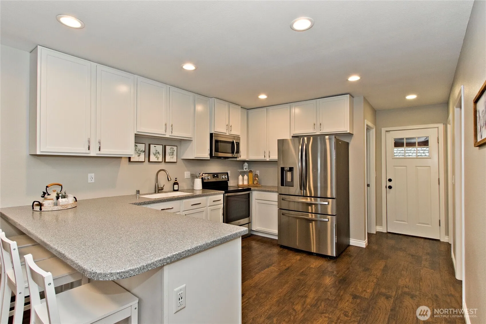 Welcome to the best of Enumclaw living! This charming 2-bedroom home features an extra finished room with a closet, offering the flexibility and comfort that today’s buyers are looking for. With 2 full bathrooms, spacious bedrooms, beautiful engineered hardwood flooring, and a convenient utility/mudroom, the layout is as functional as it is inviting. Gather around the classic wood-burning fireplace, framed by a brick surround and mantel — the perfect centerpiece for cozy evenings at home. Step outside and discover even more possibilities with a detached flex space — perfect as a craft room, home office, workout room, or whatever suits your lifestyle. The fully fenced, generous .20-acre lot provides plenty of room to relax, play, and entertain, complete with front and back decks ideal for enjoying the beautiful Pacific Northwest outdoors. This home was thoughtfully and fully updated in 2018, including new siding, windows, kitchen, bathrooms, flooring, electrical, A/C, plumbing, hot water heater, and furnace. It is also wired for a generator, giving you added peace of mind year-round. A brand-new septic system was installed in 2023, and a new roof and gutters were completed in 2026, making this truly a move-in-ready home with major investments already made for you. All of this in the heart of Enumclaw — don’t miss your opportunity to make it yours!