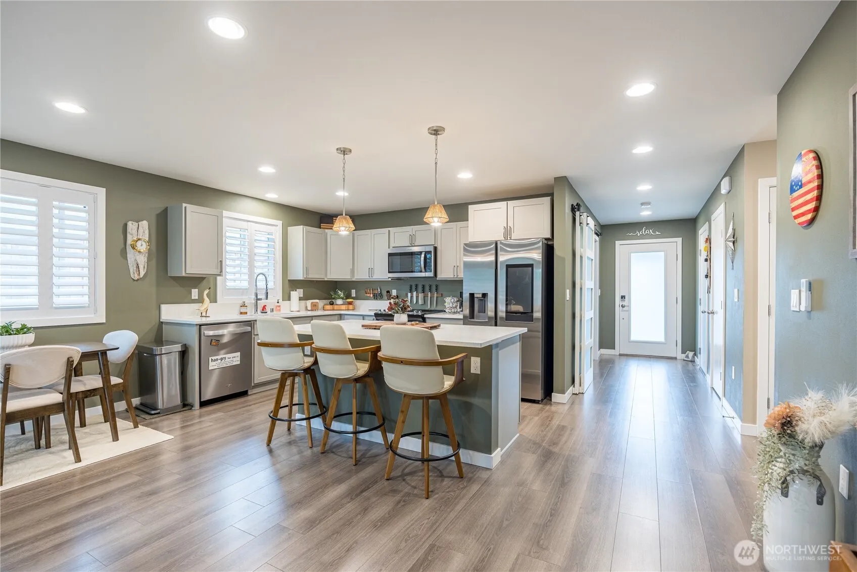 Come see this gorgeous, almost new home in the Reserve at Valley Creek neighborhood. This home built in 2023 by Sage Homes has lovely finishes, with quartz countertops and stainless appliances. Heating and cooling with ductless mini-splits in the open-concept living area and the primary suite. In addition to the quality features chosen by Sage Homes, the sellers have customized the home to their standards. This includes adding insulation, tool racks, shelving and overhead storage in the garage/workshop. The home now has tons of shelving and built in storage and the back yard has a lovely deck for relaxing in the sunshine.