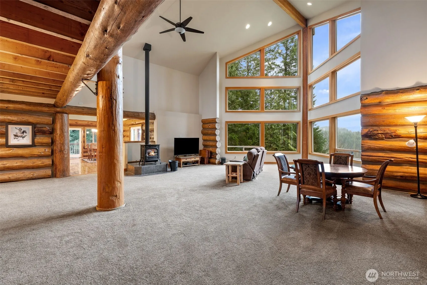 Beautiful mountain retreat! Well built log home using “pass and butt” construction for a true rustic feel. Vaulted ceilings, wall of windows overlook the property, Winters Lake and the Cascades in the distance. Great room with dining area, free standing stove. Gourmet kitchen, island with prep sink, S.S. appliances, under cabinet lighting, walk-in pantry. Private primary suite opens onto deck. Walk-in closet. Ensuite primary bath. Upstairs: view loft, bedroom and 3/4 bath. Downstairs: huge rec room, mechanical room, storage room with freezer. MIL apt: full kitchen, bedroom, 3/4 bath with laundry, separate entrance and deck. Currently rents for $1200/mos. Gated entry into property, 200′ of waterfront on Winters Lake, 4.17 acres of forest. Attached two car garage, patio, Generac whole house generator. Short drive into town and only 43 miles to Stevens Pass. Come enjoy the peaceful setting, the amazing views, the lake. Don’t miss this one!!