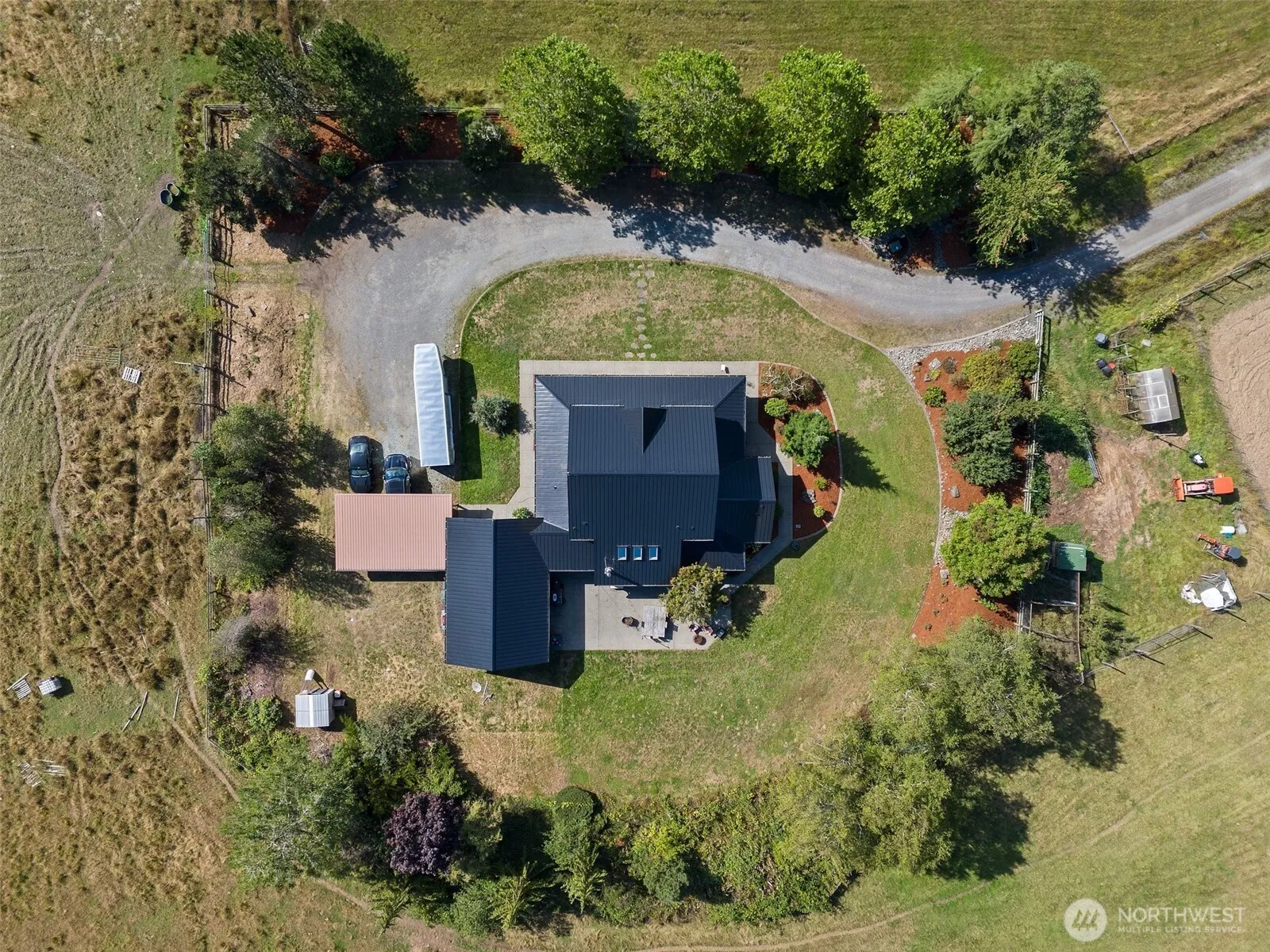 This one-of-a-kind property features 56+ acres featuring pastures, a creek, forest and views galore. Stunning 3880 sq.ft. home features 3 bedrooms all with en-suite baths, primary bedroom on the main floor and an a office. On those cool nights, curl up by the wood fireplace in your gorgeous 2-story living room. Home also features large bonus/media room with projector and pull down screen. The shop is powered by a solar system that also feeds back to Ohop Mutual for very low power bills. Additionally, this farm features 20+/- acres of marketable timber and a fresh land survey. Sit back and enjoy the serenity with wonderful views of scenery and wildlife.