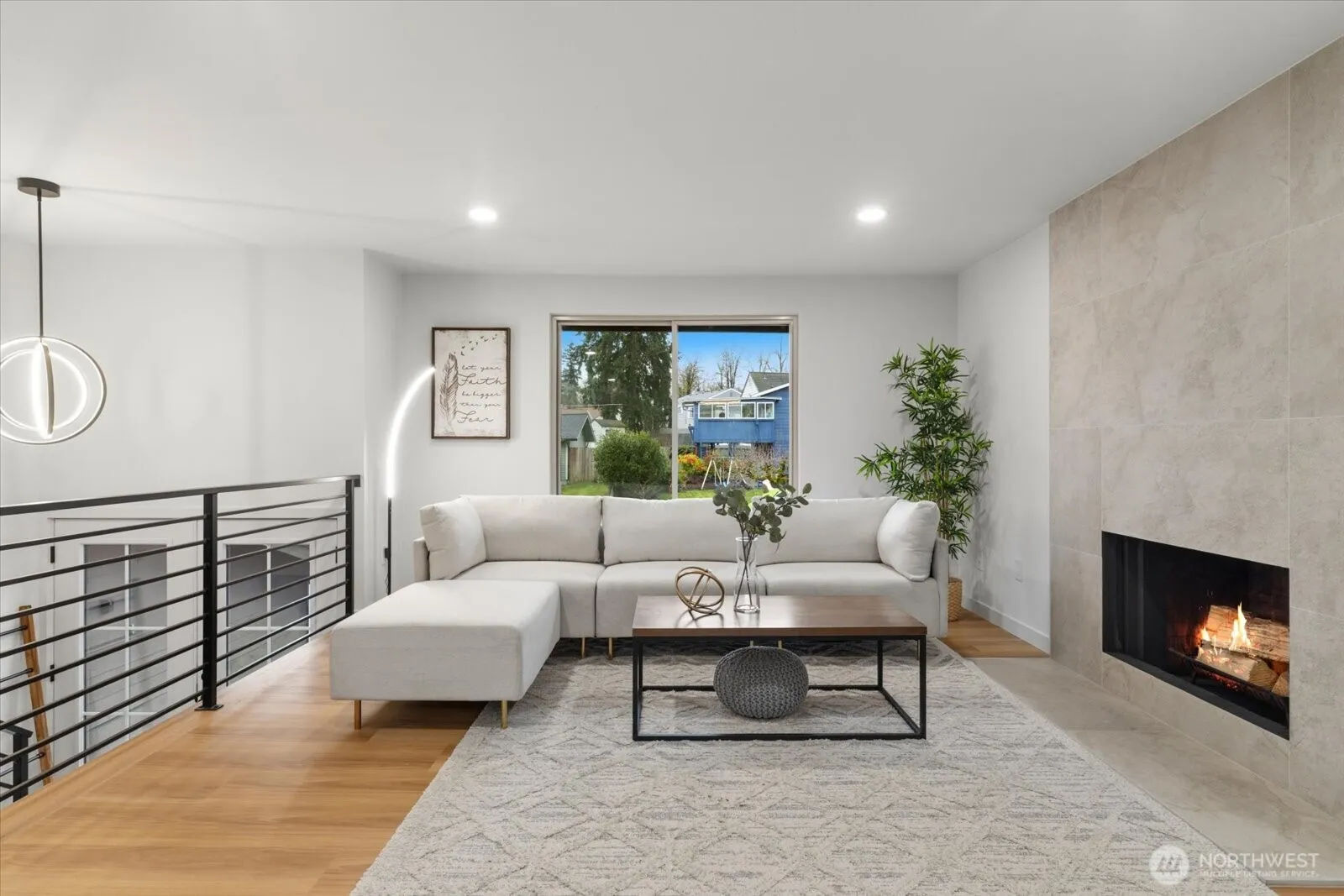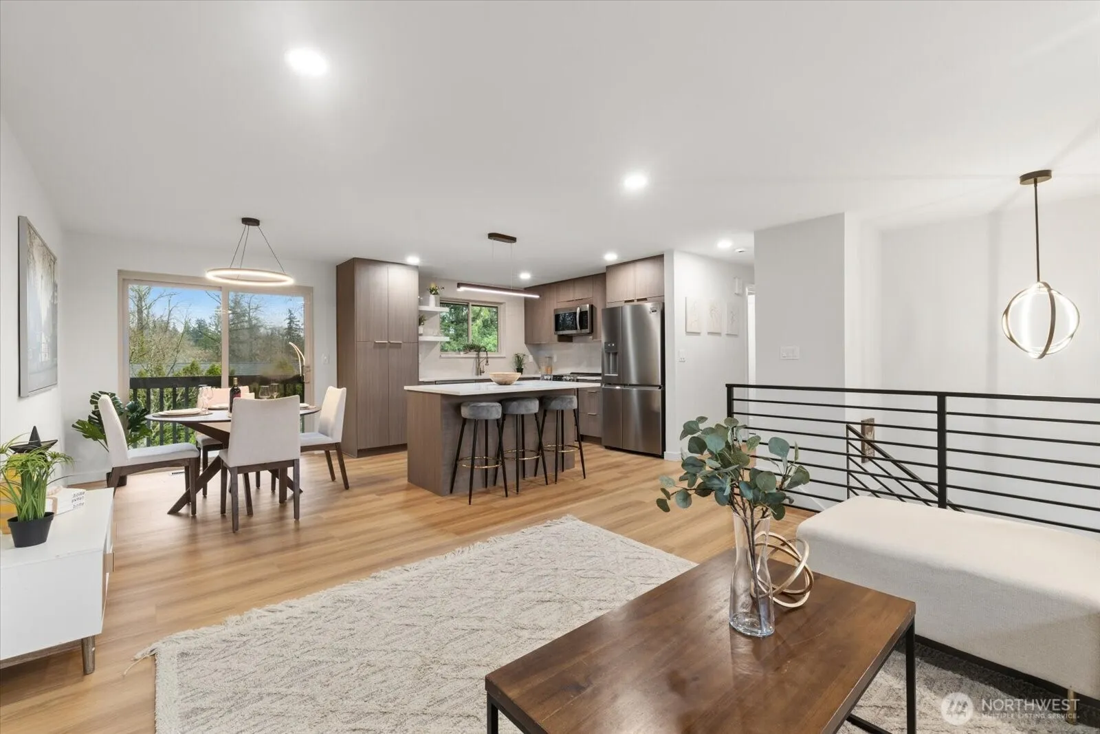 Beautifully updated home where everything has been thoughtfully renovated with tasteful, modern finishes throughout. The heart of the home is a gorgeous kitchen featuring sleek cabinetry, stylish countertops, and a layout perfect for both everyday living and entertaining. The adjacent dining room opens directly to a deck, creating a seamless indoor-outdoor flow and overlooking a beautifully landscaped backyard—ideal for relaxing, hosting, or enjoying peaceful mornings. Upstairs, you’ll find three comfortable bedrooms, including a spacious primary suite complete with its own private bathroom featuring a walk-in shower. The additional bedrooms are well-sized and filled with natural light. The lower level offers incredible flexibility with a separate living space that includes its own bedroom and full bathroom—perfect for guests, multi-generational living, or potential rental use. This level also features a cozy living area with a fireplace, highlighted by a striking wood accent wall, as well as a wet bar with a bar fridge. From here, step out to the patio and enjoy easy access to the backyard. The beautifully landscaped yard provides plenty of space for recreation, gardening, or entertaining, making this home a true retreat both inside and out.