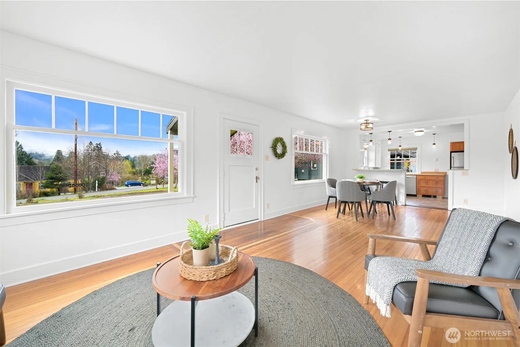 Located on a quiet dead-end street in a desirable South-end neighborhood, this home offers excellent sun exposure and Chuckanut Mountain views. The south-facing living, dining & kitchen fill the home with natural light year-round. Features include custom cherry cabinets with pull-out shelving, original built-in closets and hardwood floors, brand new carpet, a large detached 2-car garage and energy-efficient solar panels. The sunny yard is ideal for gardening and outdoor living, and the large lot offers ADU potential. Conveniently located within easy walking distance to Fairhaven, schools and the Interurban Trail. Enjoy sunny living, mountain views, and exceptional access to Bellingham’s outdoor lifestyle with all the charm this home has to offer!