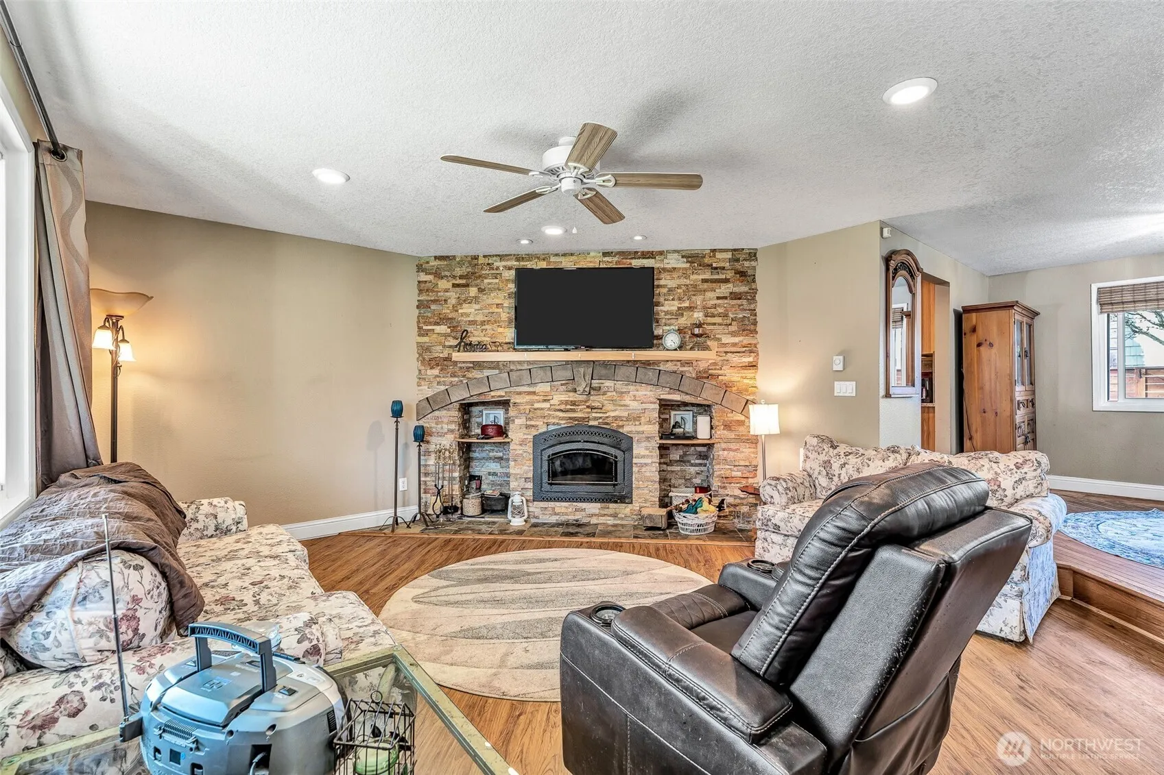 Welcome to this charming 1-level ranch-style home offering 3 bedrooms and 2 bathrooms in a cozy and convenient setting. Inside, you’ll find hardwood floors throughout and a thoughtfully designed layout. The sunken living room is full of character, featuring a beautiful fireplace, ceiling fan, and a bright bay window that fills the space with natural light. The newly remodeled kitchen is spacious and inviting, with sliding doors that open directly to the backyard, creating a seamless indoor-outdoor flow—perfect for entertaining. A dedicated utility room adds everyday functionality. The primary bedroom includes an ensuite bathroom and ceiling fan, while a secondary bedroom also features a ceiling fan for added comfort. Step outside to enjoy the freshly planted lawn, new fencing, and a private backyard space ready for relaxation or gatherings. Situated as an end unit on a charming, quiet street, this home offers both privacy and convenience, just minutes from restaurants, grocery stores, and everyday amenities. A perfect blend of comfort, style, and location!