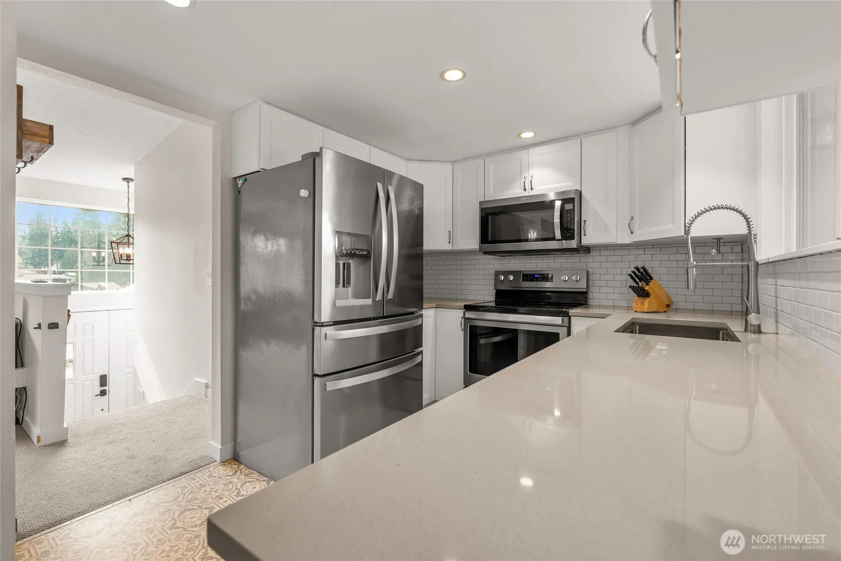Prime Puyallup Split-Entry Home – ready for you! Enjoy the serene park-like approach w/ mature landscaping as you enter this well-maintained property. Stay connected w/ your guests as you relax in the open floor plan living spaces – the living room is centered around a warming fireplace & opens to the stylish kitchen, boasting stainless steel appliances and plenty of pantry space for your storage needs! The primary bedroom is complete w/ a private ensuite bathroom & lots of closet space, while the additional bedrooms are ready to adapt for your various needs. Lower level delivers a cozy rec room – an ideal escape from the day-to-day, and potentially your new home movie room! Fenced yard provides ample space for your outdoor celebrations – complete w/ a large deck patio to make summer bbq’s a breeze. Front yards offer a low-maintenance sprinkler system, making maintenance a breeze. Sapacious garage has ample room for parking or to use as a shop & storage space! The central location offers convenient access to an off-leash dog park for your four-legged companions, WA-512 for commuting, downtown Puyallup for shopping & dining, great local parks, and the highly rated Puyallup school district.