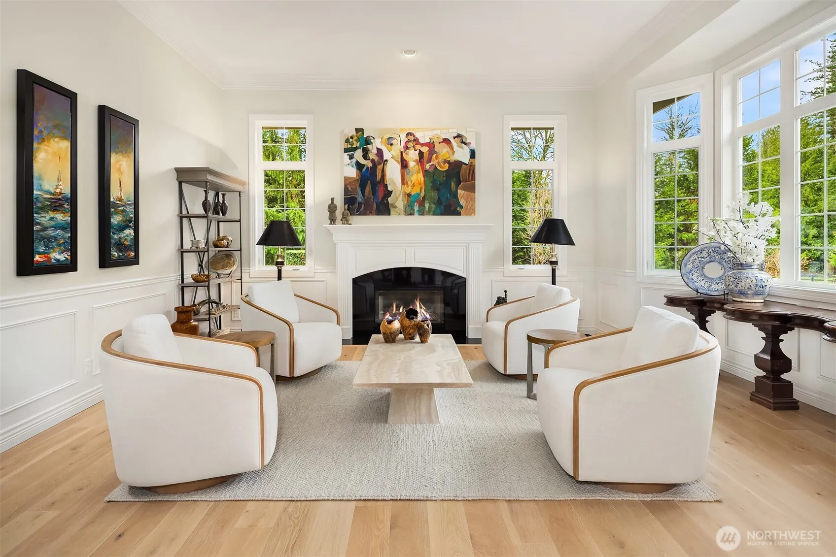 A Bucolic Retreat of Privacy and Design. Luxury Living in The Woodlands. Tucked within the gated Woodlands community, this exceptional 4,640 sq ft residence offers privacy, scale and refined Northwest living on over two beautifully level acres. The home is surrounded by pastoral views and lush, professionally landscaped grounds with lighting and a fire pit gathering area, creating a peaceful, park-like setting. Ideally positioned at the end of the neighborhood and bordering the renowned Pegasus equine facility, the property blends quiet seclusion with convenient access to Redmond amenities, top-rated schools and the tech corridor. Inside, an open-concept design showcases quality construction, generous proportions and an easy, flowing layout. Brand new engineered hardwood floors and fresh interior paint create a crisp, updated aesthetic, while expansive windows invite natural light and frame the surrounding landscape. The updated kitchen features refinished cabinetry, Sub-Zero and Wolf appliances, generous prep space and seamless connection to the dining and great room with a striking floor-to-ceiling stone feature wall and adjoining solarium for year-round enjoyment. Main-level living is highlighted by a spacious primary suite and office or guest room, while the upper level offers two bedrooms, a full bath and a versatile bonus room for guests, media or recreation. Plus a rare 4 car garage. Offering rare accessibility while preserving a sense of quiet seclusion and privacy.