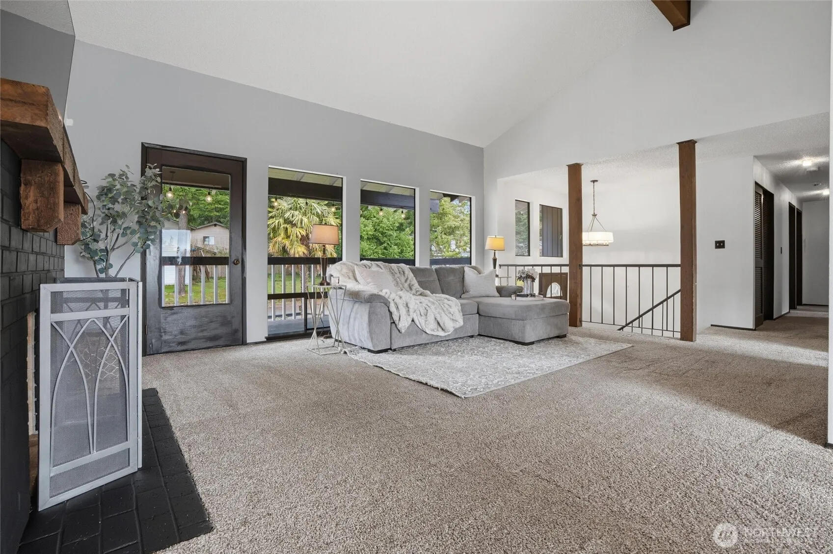 Vaulted ceilings and abundant natural light welcome you into this spacious home with a fantastic layout and great bones! Enjoy two cozy fireplaces, expansive living and dining areas, and plenty of room for everyday living and entertaining. The kitchen flows seamlessly to an extra large back deck—perfect for gatherings—while a front balcony offers an additional space to relax and unwind. This home features a 2-car garage, connected to Generac Generator with Automatic Transfer Switch, fully fenced yard, storage shed, and mature landscaping. With multiple living spaces, there’s flexibility for a home office, guests, or multi-generational living. Conveniently located near shopping, parks, schools, and Bangor Base, this home offers both comfort and accessibility. A wonderful opportunity to make it your own!
