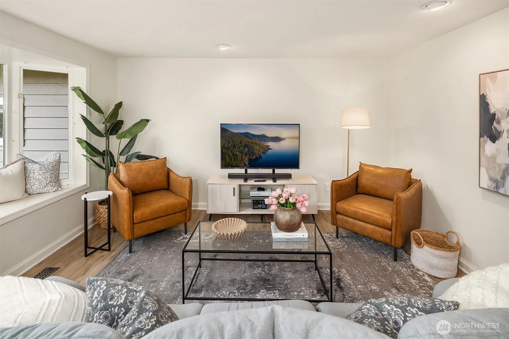 Welcome to this one-of-a-kind property offering space & versatility on a super private .37-acre lot. The main house is 1 story, has 5 bedrooms & 2.75 bathrooms, an eat-in kitchen, formal living & dining rooms. The family room has custom stained-glass windows created by the former owner & a gas fireplace surround with craftsman style tiles & mantle. Solar tubes allow for natural light year round. The 2 car garage has a room conversion in one of the bays, allowing for more space in addition to the 5 bedrooms. Perhaps a gym or home office? Not included in the main home’s square footage is a detached 720-square-foot cottage / DADU! Complete with its own kitchen, bathroom, living room, bedroom with a walk-in closet, washer & dryer, freestanding gas stove, tankless water heater & cathedral ceilings. With a separate parking area, this private space is ideal for guests, multi-generational living, rental income or a home office setup. Both homes have freshly painted interiors & exteriors. Step outside to enjoy everything this property has to offer. The big composite deck is perfect for entertaining or relaxing evenings at home. The sport court provides opportunities for recreation, & the greenhouse is ready for gardeners to grow year-round. This rare property sits in a quiet cul-de-sac, conveniently located in Bothell near Thrashers Corner. This home is located in the coveted Northshore School District. Pre-inspected and move-in ready!