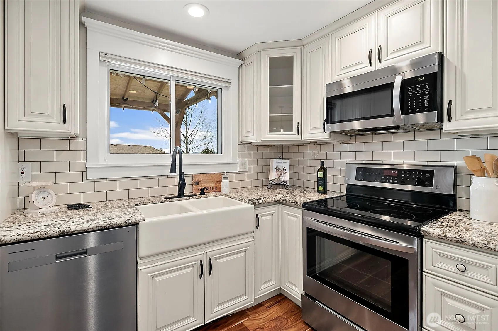 Beautifully updated 4-bedroom, 2.5-bath home blending modern style with functional living. Fresh interior paint, new carpet, newer windows, newer furnace, and new exterior siding and paint create a crisp, move-in-ready feel. Main level features engineered hardwood flooring, abundant natural light, and an open-concept living and dining area alongside an updated kitchen with white cabinetry, slab granite countertops, stainless steel appliances, and pantry. Spacious primary suite offers an en suite bath and dual closets, including a walk-in. Lower level includes a versatile family room, separate laundry room, 4th bedroom, and access to the attached 2-car garage. Recent improvements include a newer roof, newer plumbing updates, newer hot water heater, newer driveway, and additional kitchen updates. Saltwater and mountain views add to the appeal, while the fully fenced backyard offers a covered concrete patio, in-ground sprinkler system, and room to relax, entertain, or create a future hot tub area. HOA includes access to stocked private lakes, a highly responsive security force, and optional golf and country club membership.