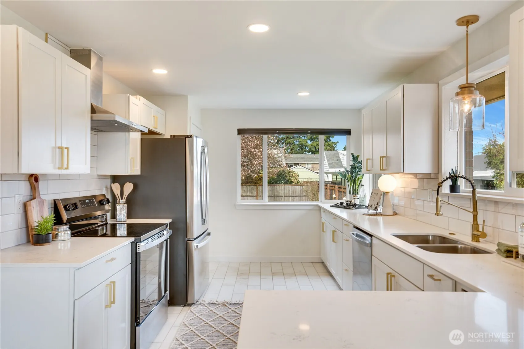 Modern updates meet mid-century charm in one of North Tacoma’s most coveted pockets. This beautifully dialed-in 1960 brick home blends timeless character with thoughtful upgrades throughout. Refinished original hardwoods flow effortlessly into living space & three main-level bedrooms. The updated kitchen features soft-close shaker cabinetry, quartz countertops, & new stainless-steel appliances. The spa-inspired bathroom showcases a large double vanity, creating a space that balances style & comfort. Downstairs offers exceptional flexibility with a spacious second living area & kitchenette ideal for rental income, multi-generational living, or the ultimate hangout space. A massive fourth bedroom, ¾ bath, large laundry room & expanded one-car garage complete this versatile lower level. Step outside to a peaceful backyard retreat with a concrete patio, blooming cherry blossom tree & a mini apple tree. Only half a block from Jefferson Park & Mason Trail. An easy stroll to neighborhood favorites Beer Star, Valhalla Coffee & Tacoma Pie. New AC installed in 2023 & sewer line replaced in 2026.